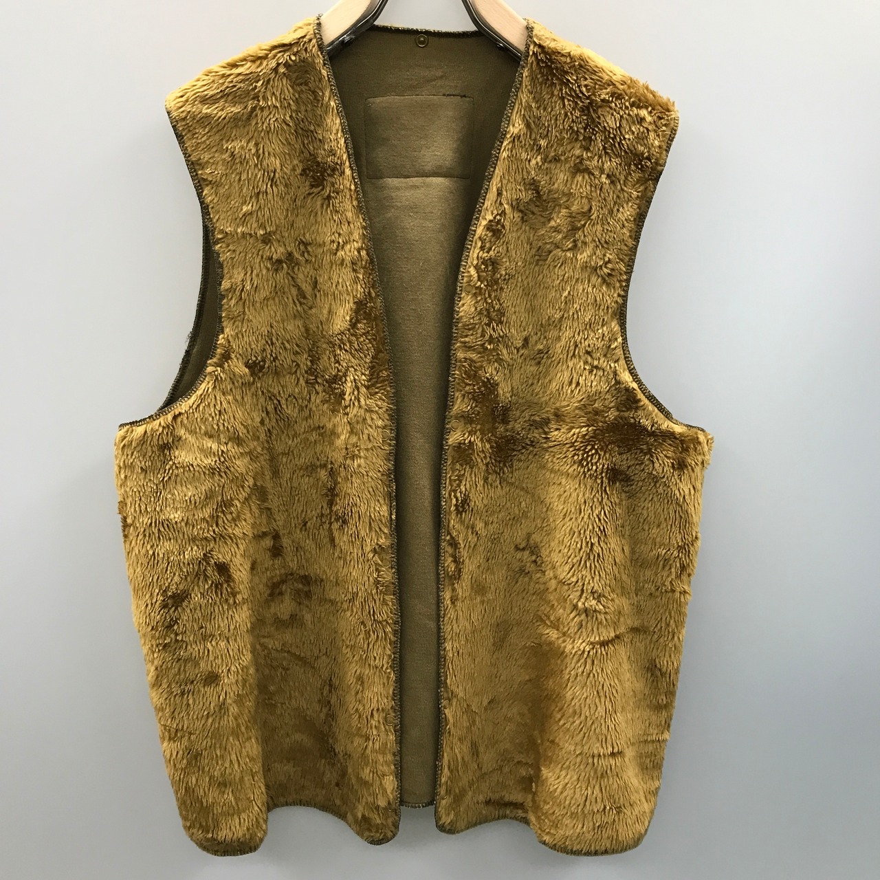 3ワラントパイルライナーベストです。薄汚れ汚有り、イタミは見受けられません。左右スナップボタンの凸のため閉めることはできません。表アクリル100%と裏ポリエステル100%を使っています。