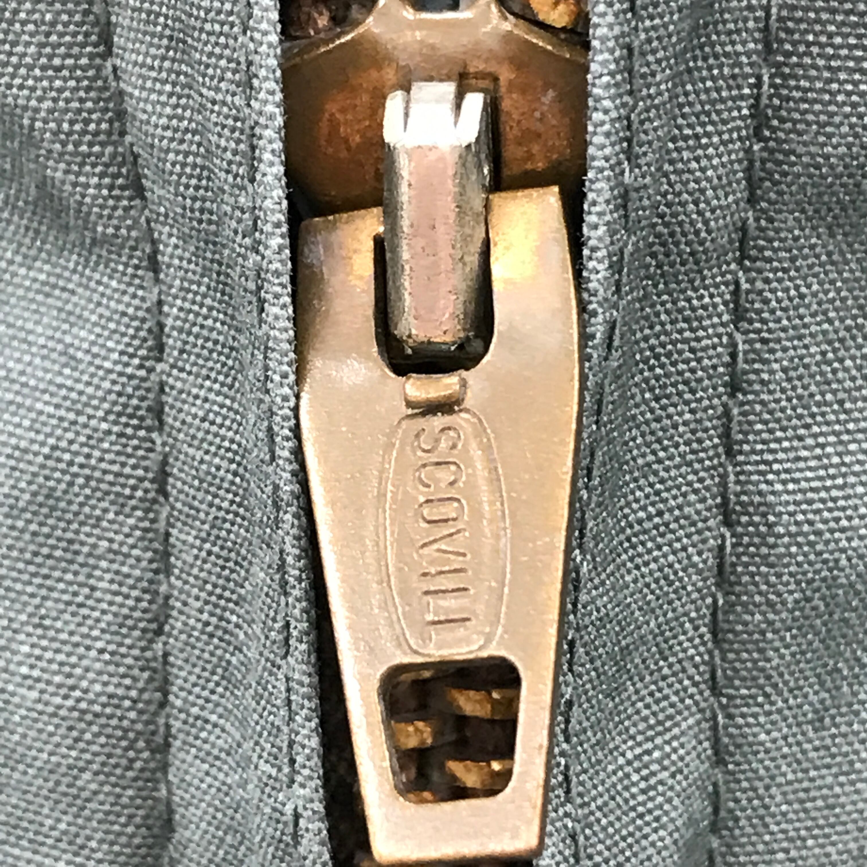 セージグリーン、うすいブロンズカラーで、チンストラップ、SCOVILLジッパー、