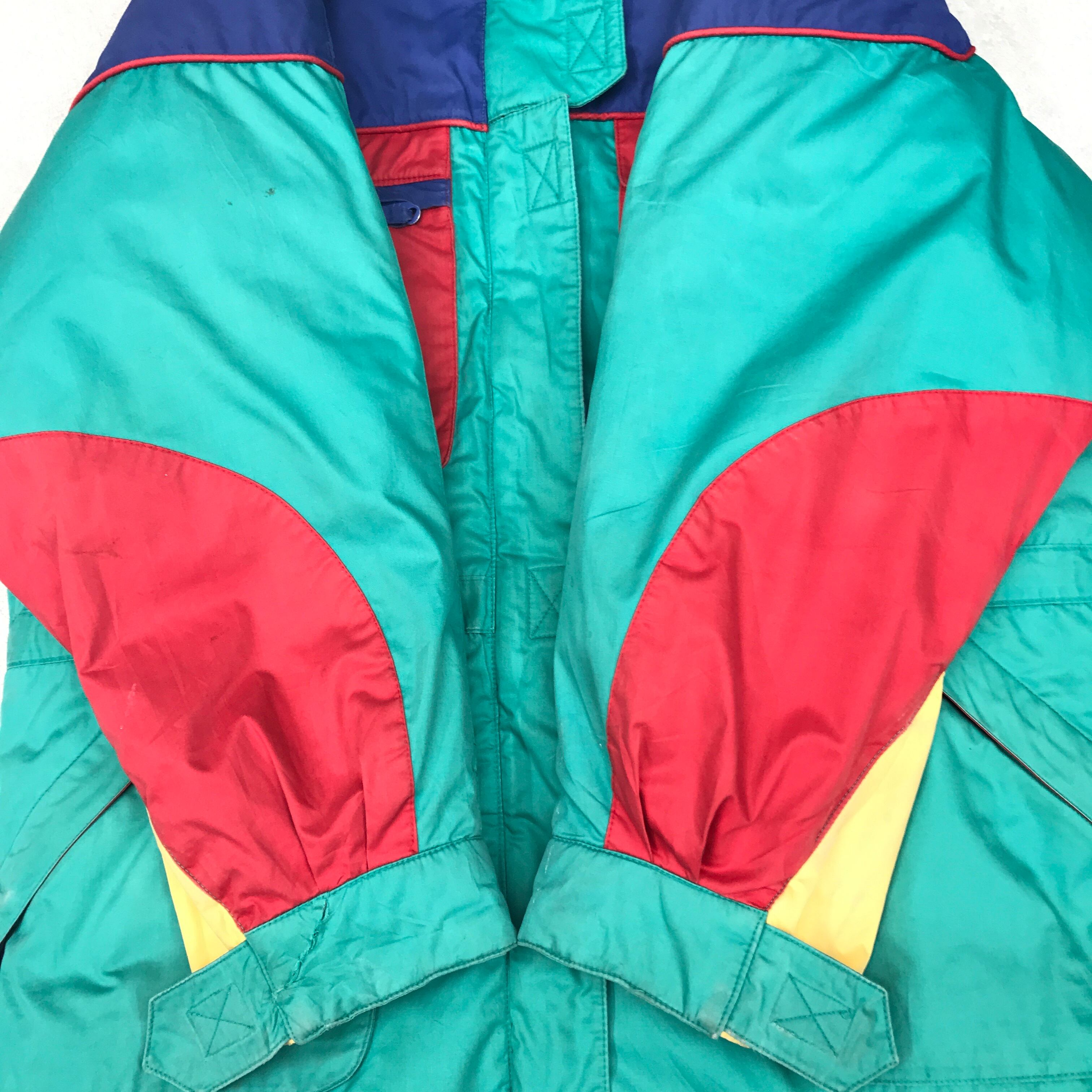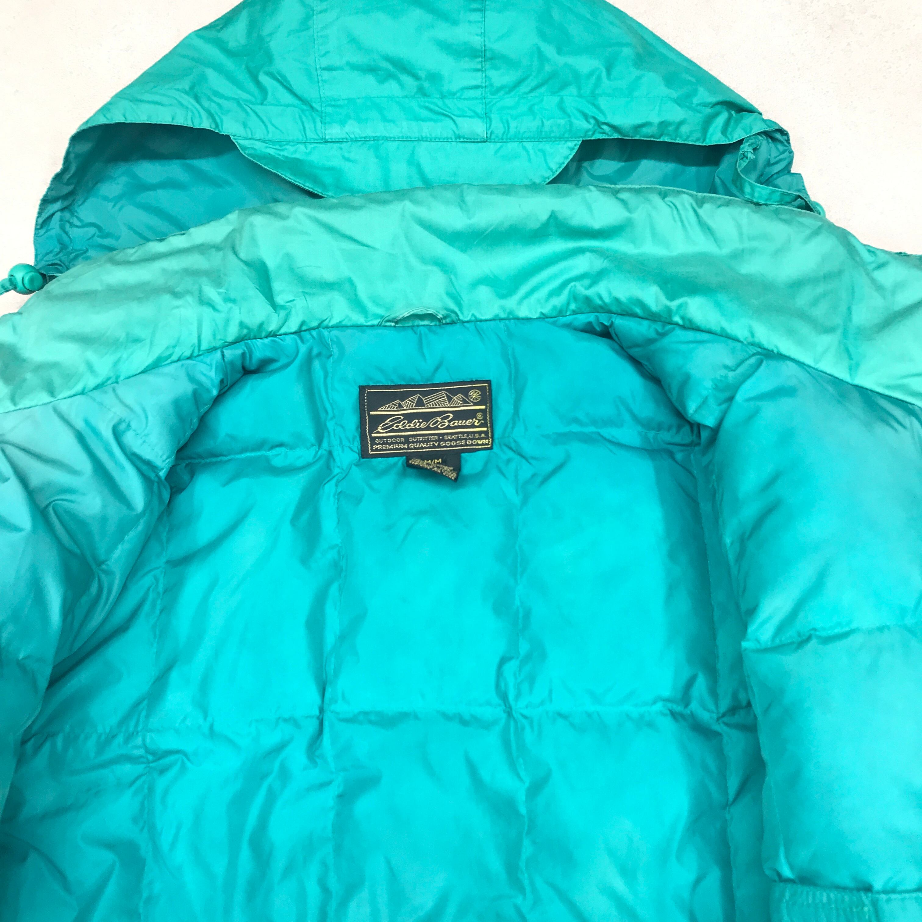 90年代 ビンテージ EDDIE BAUER エディーバウアー クレイジーパターンダウン ジャケット ロング丈 ライトグリーン