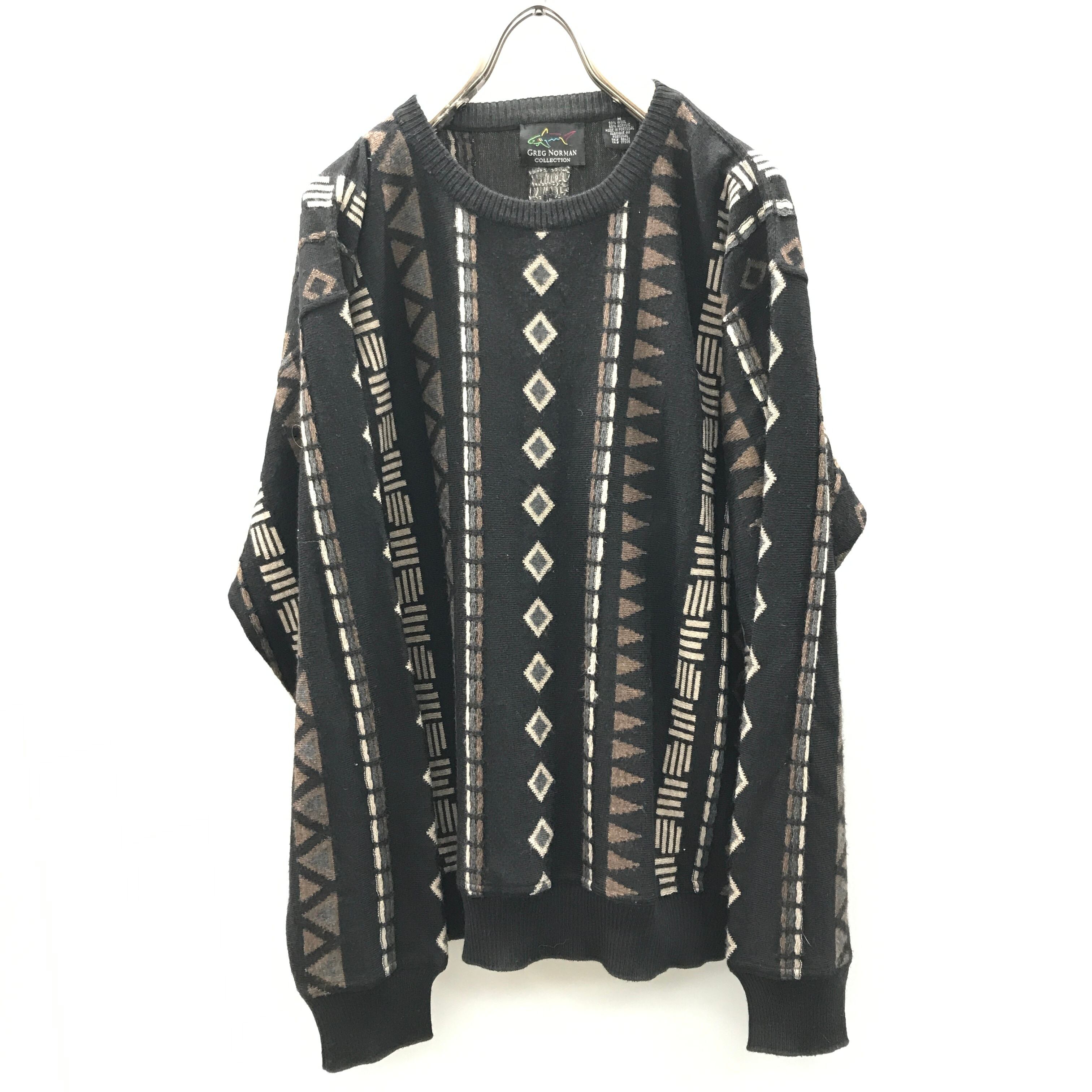 80〜90年代 Greg Norman Collection 総柄 立体ニット