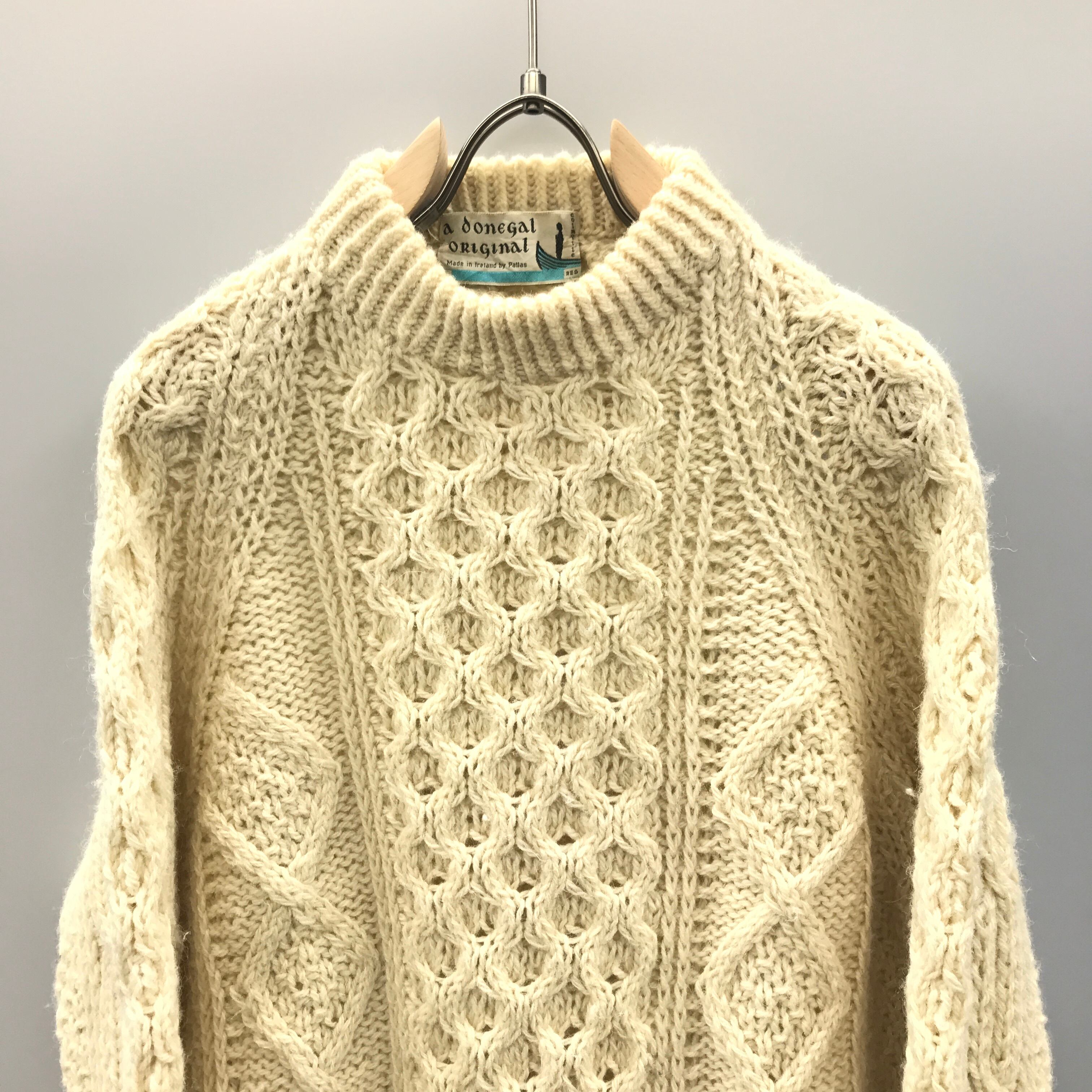 70年代 アイルランド製 DONEGAL クルーネック フィッシャーマンセーター Handmade in ireland by pallas