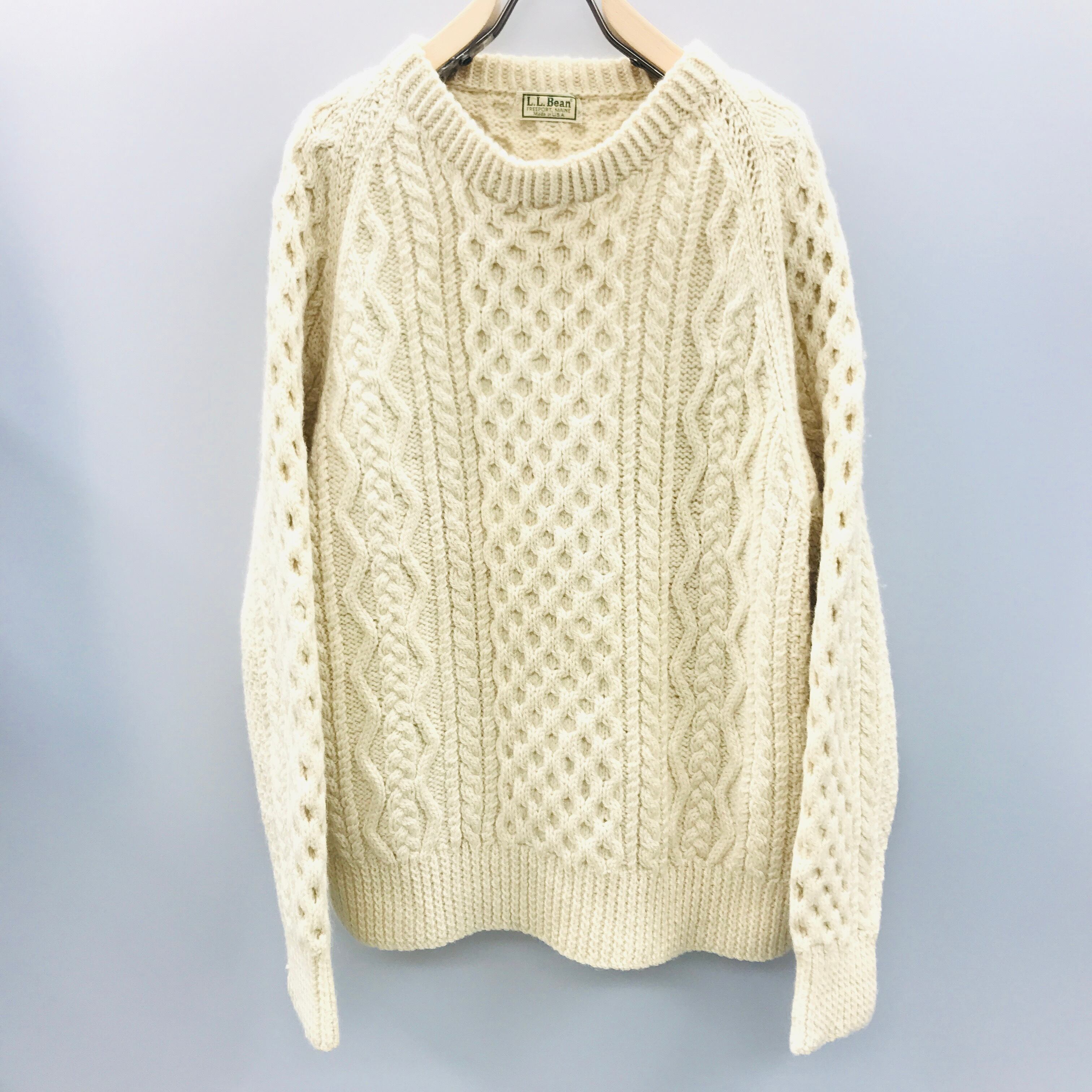 大きめ!80〜90年代 USA製 L.L Bean アランニット フィッシャーマンセーター