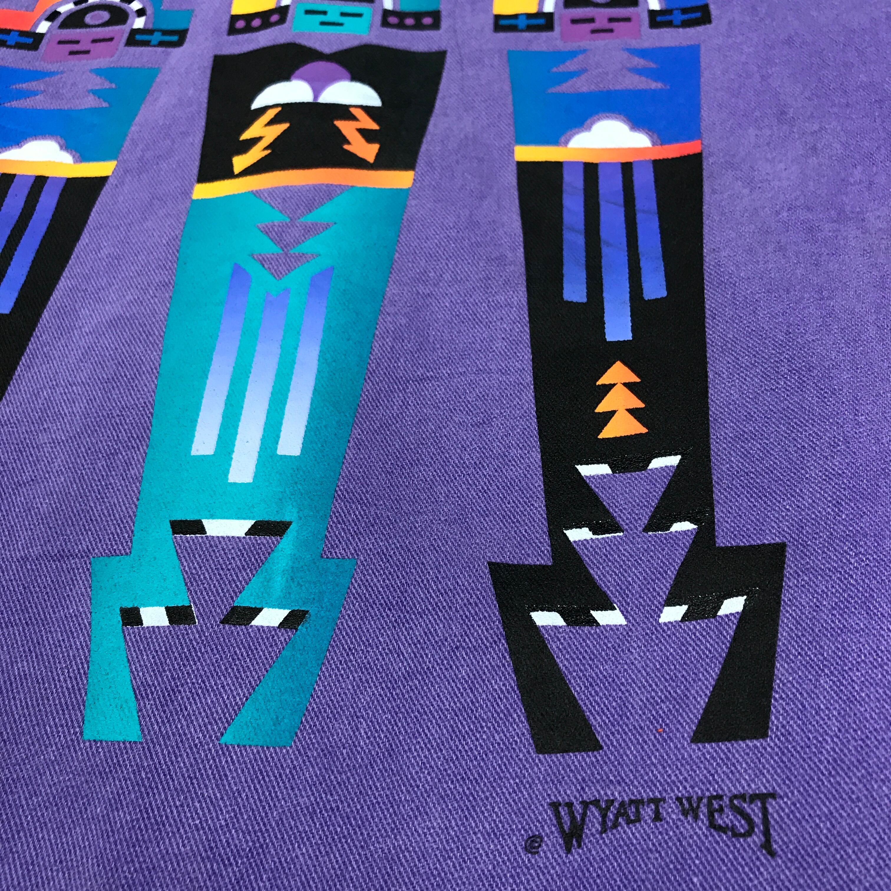80〜90年代 USA製 KEY WEST かわいいファニーな ネイティブ柄 パープル クタった