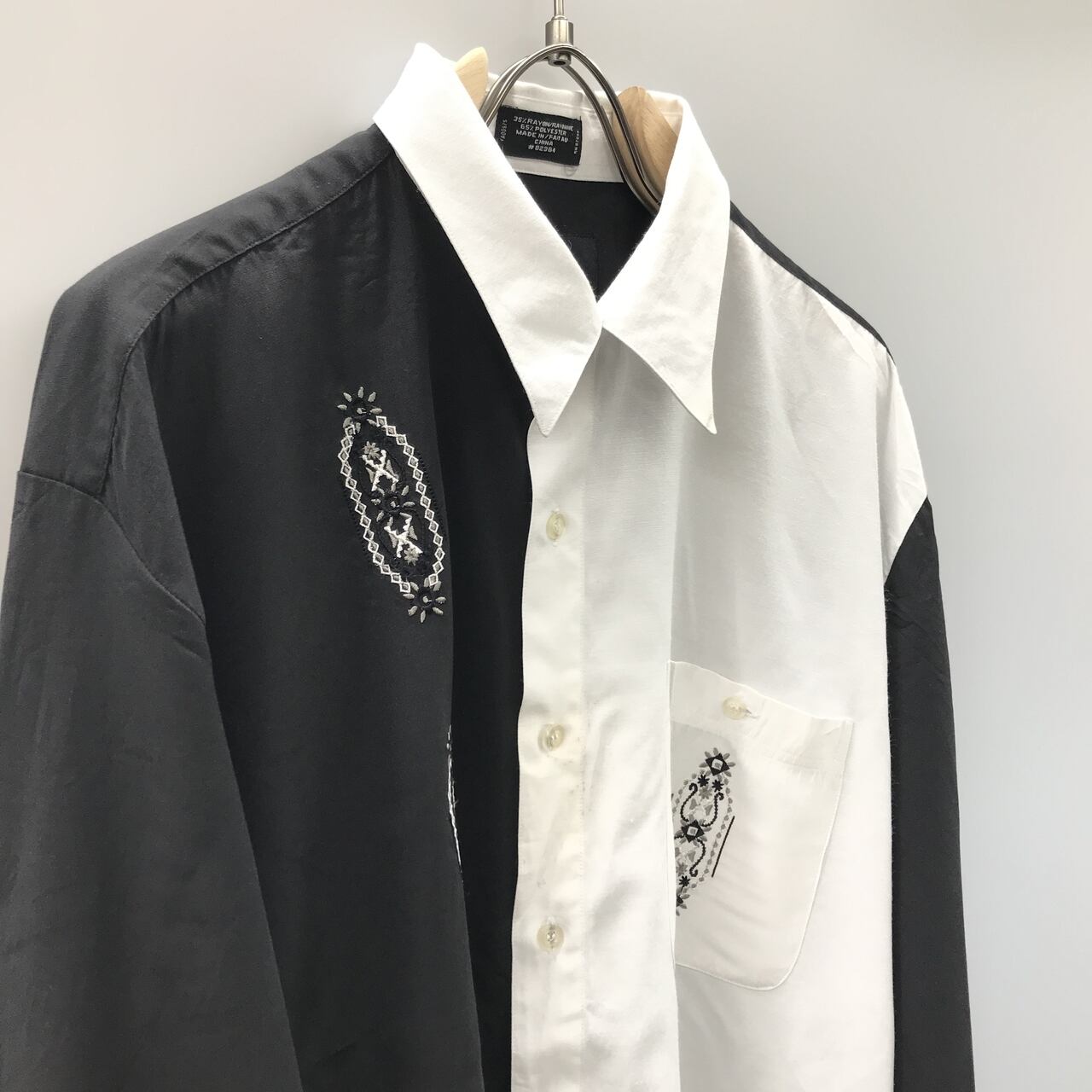 80〜90年代 I.MIILER 白黒切り替え 飾り刺繍入りレーヨンポリシャツ ドレスシャツ
