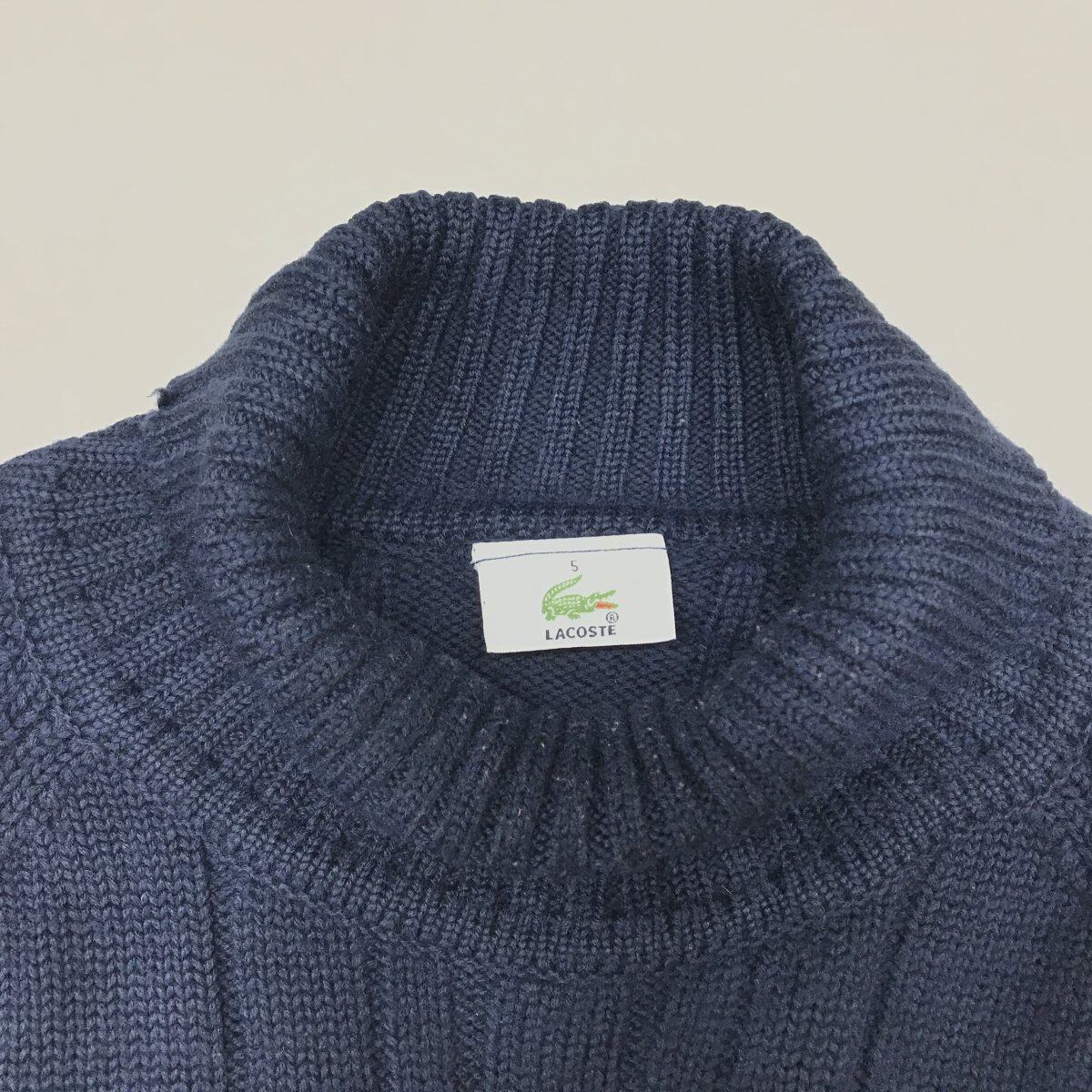 LACOSTE80〜90年代 ユーロ企画 タートルネック ウールケーブル編みセーター
