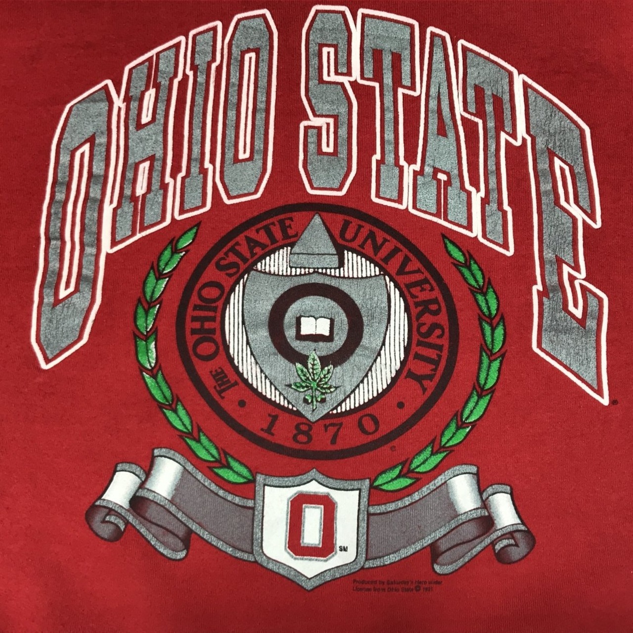 セットインスリーブのオハイオ州立大学のカレッジプリント入りスウェットです