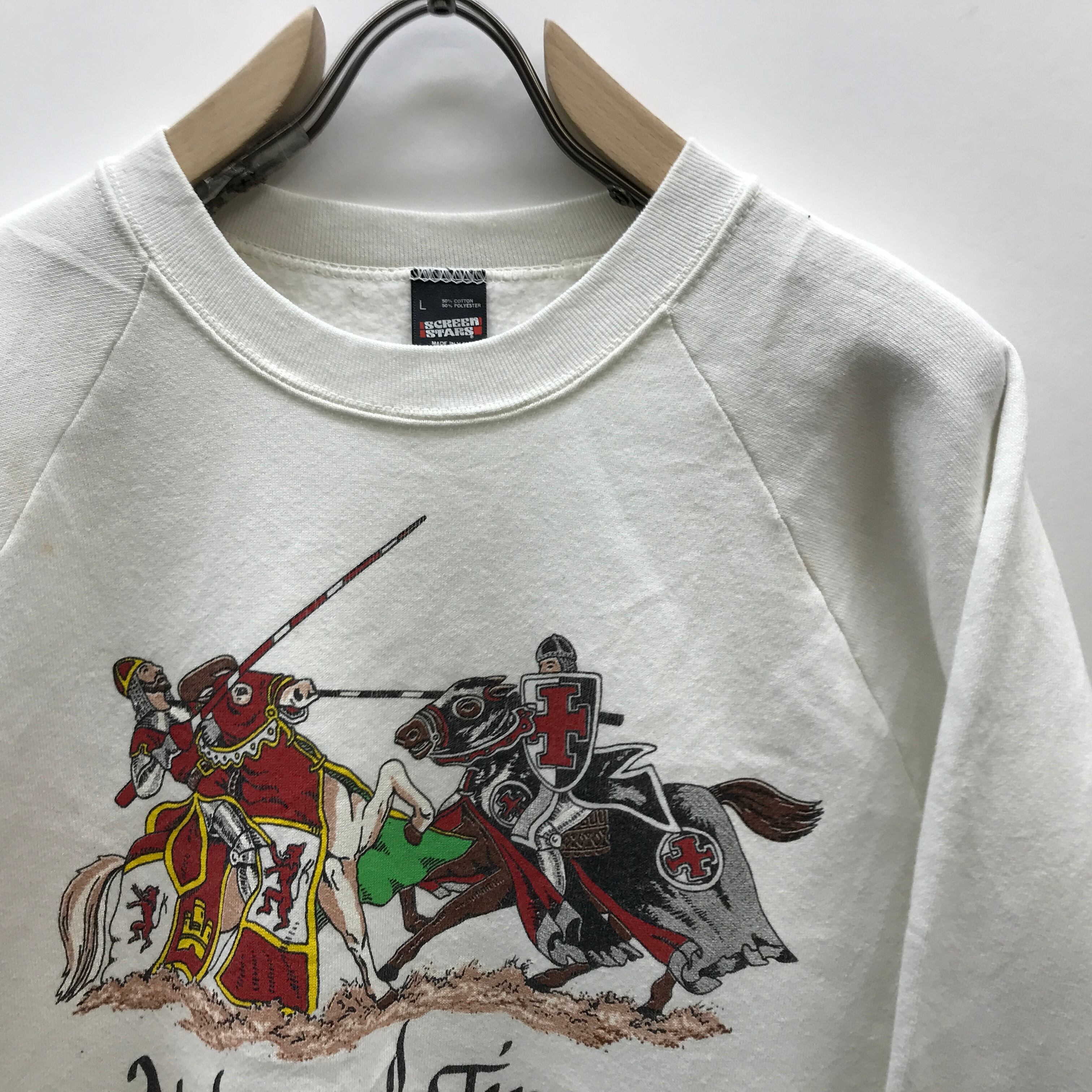 SCREEN STARS 80〜90年代 USA製 ラグラン Medieval Times プリントスウェット ホワイト