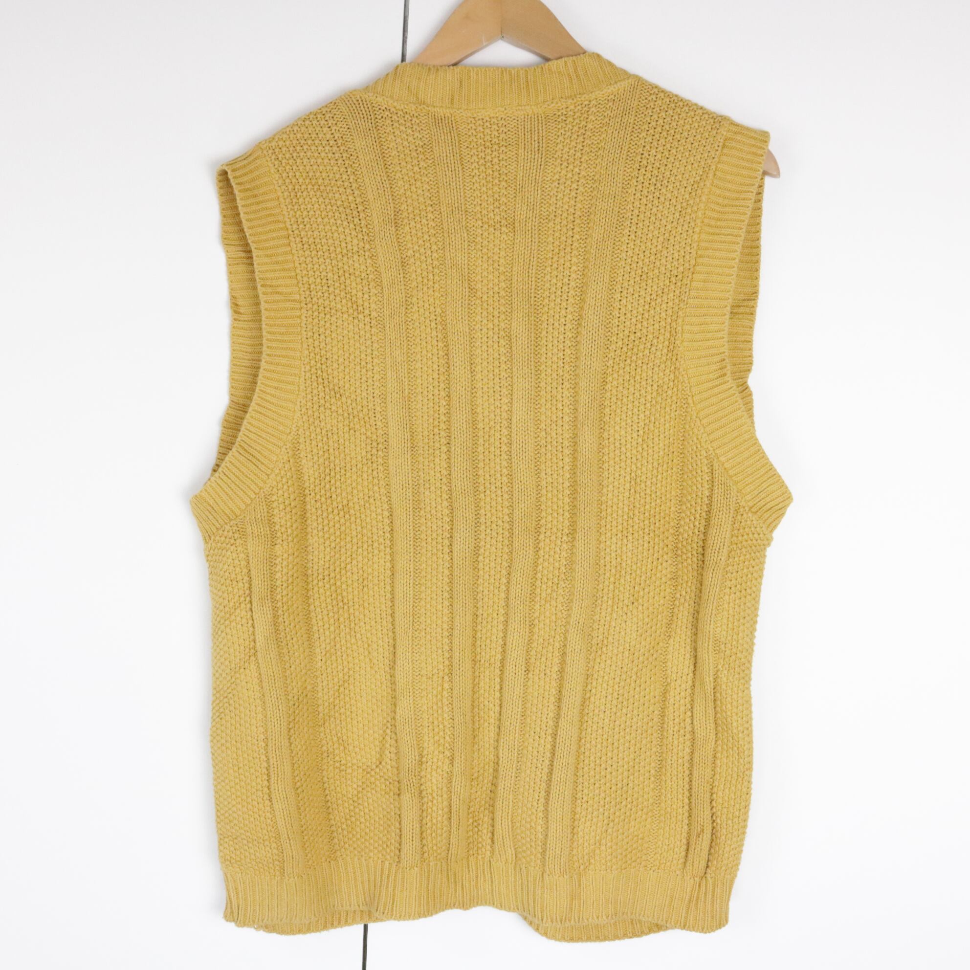 80年代のMADE IN USA。おそらくコットンをベースとした生地で編み込まれた薄手のベストです。レトロ感のあるマスタードカラーです。キズや汚れは見受けられません。古着好きな女性に。