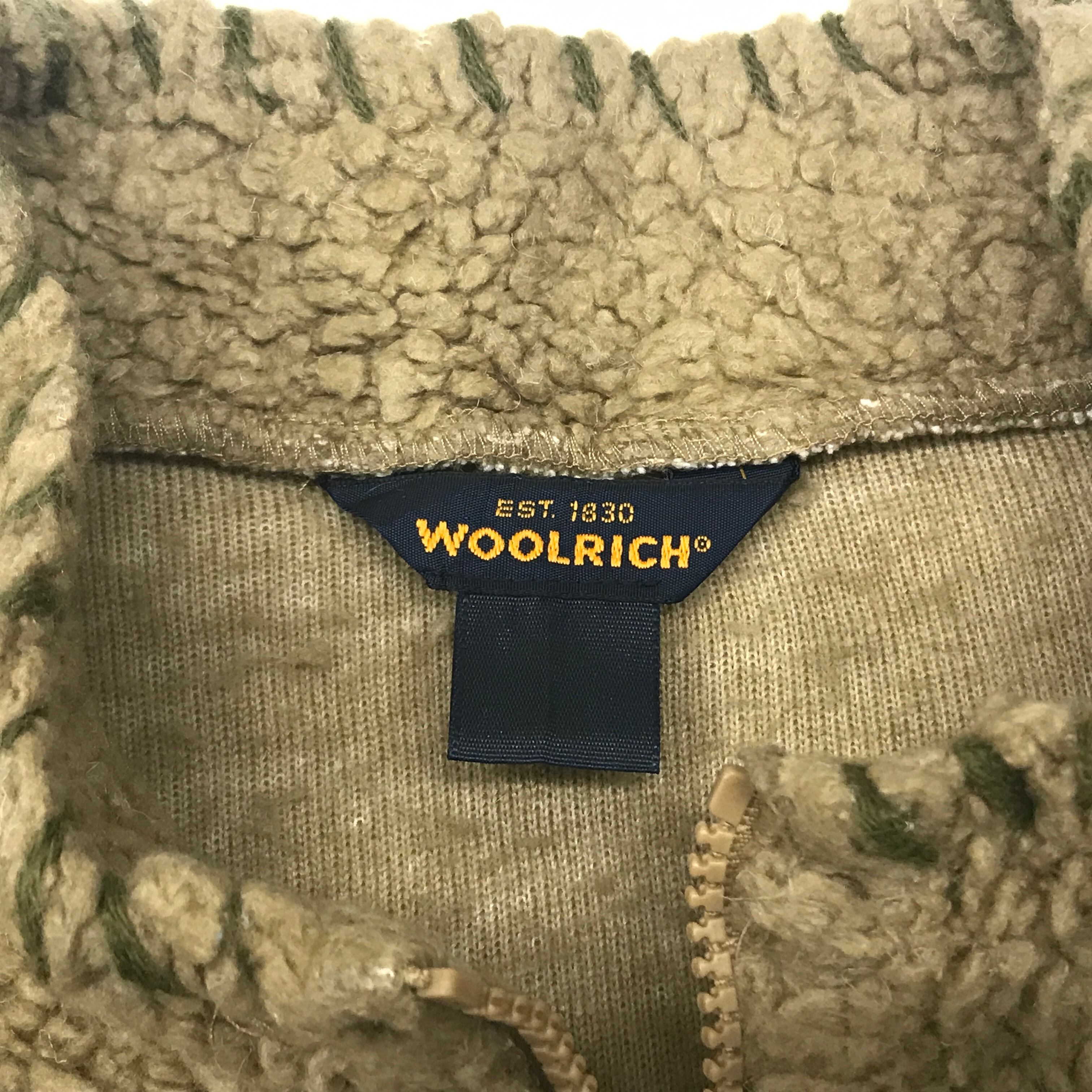 WOOLRICH ウールリッチ 90〜00年代 オールドタイプデザイン ヘラジカ アップリケ付きフリース ハーフジップ プルオーバー ベージュ