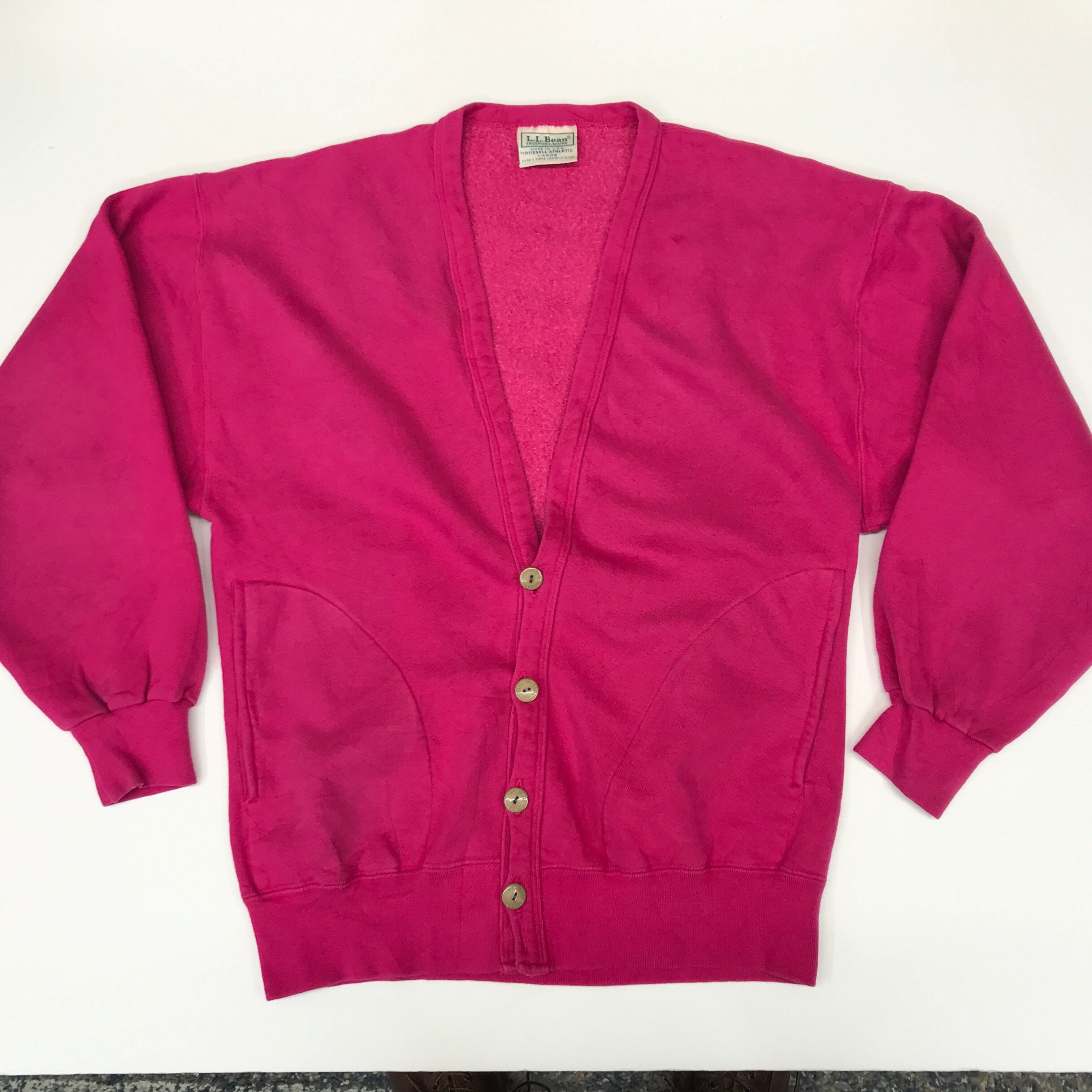LLBEAN by RUSSEL エルエルビーン バイ ラッセル 80年代 USA製 ヘビーコットン スウェットカーデガン ショッキングピンク!
