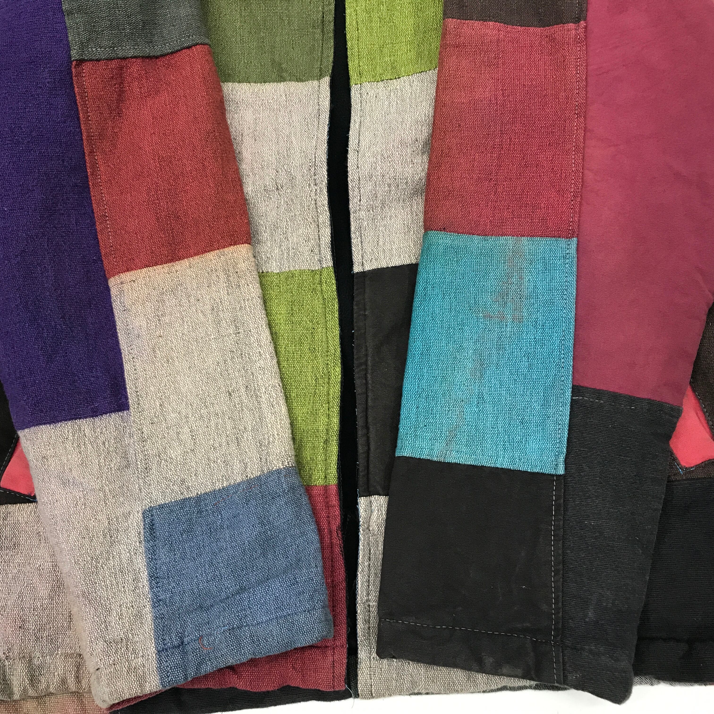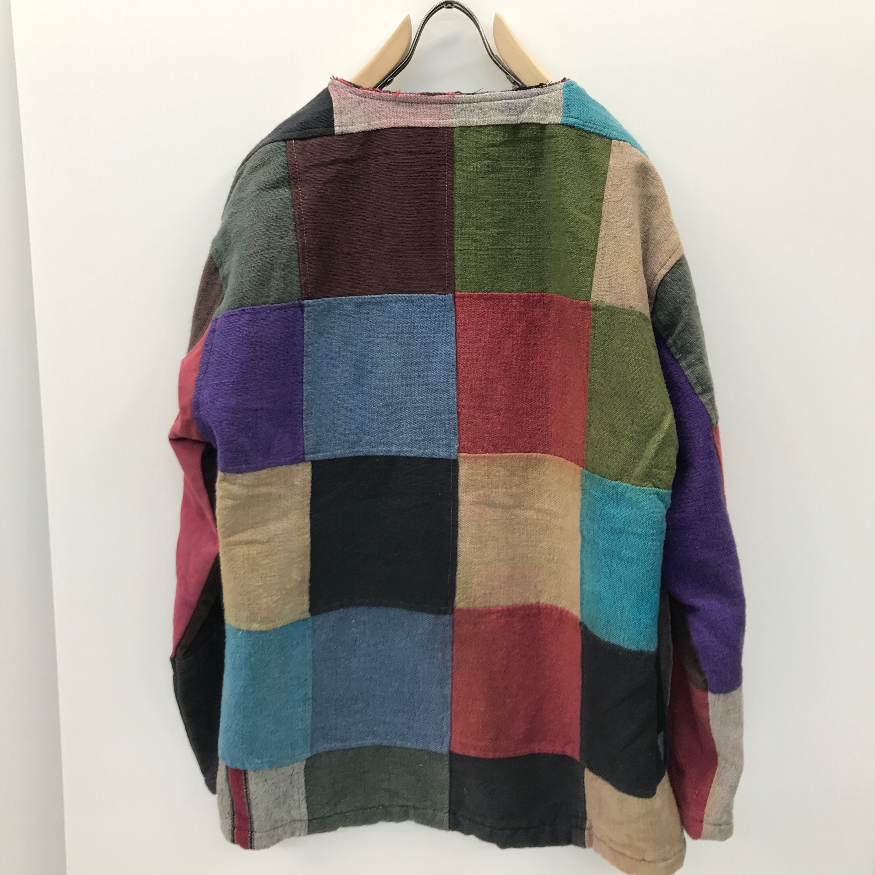 ASIAN エスニック マルチカラー アジアンクレイジーパッチワーク リメイクジャケット ノーカラー 裏フリースライナー