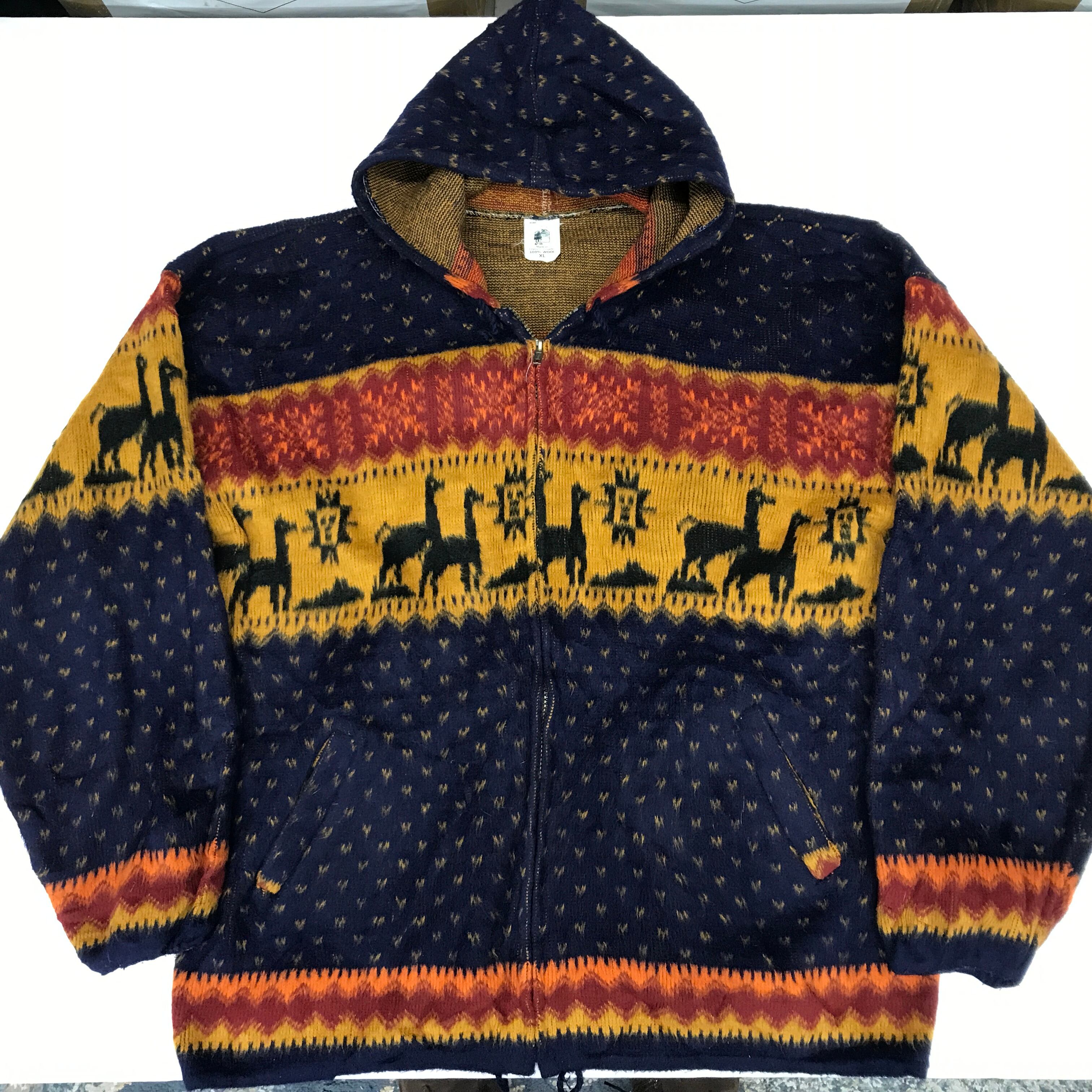 80〜90年代 エクアドル製 アルパカ 総柄 マルチカラー ジップニットパーカー セータ