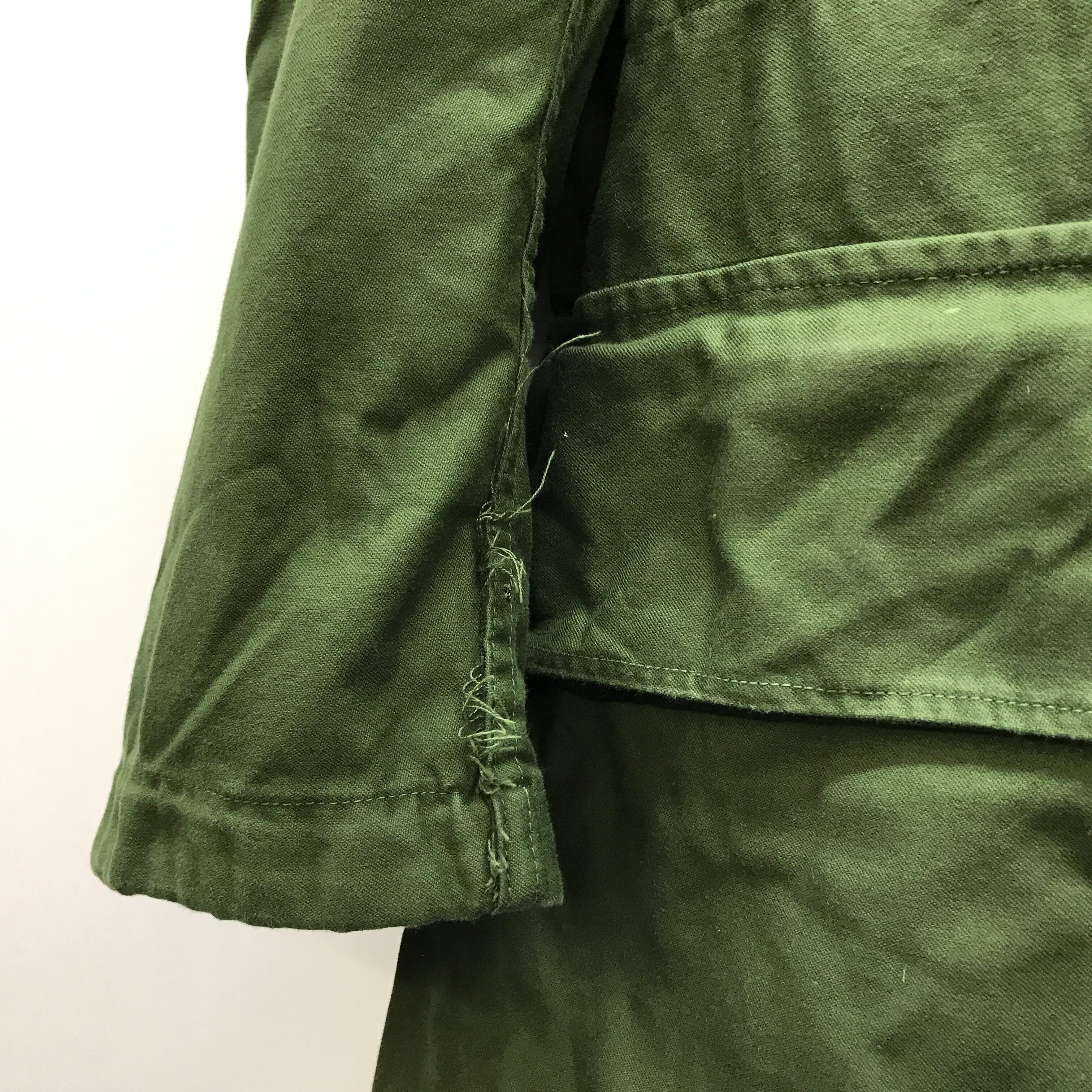 1960年代に支給が始まりました。 シェルは厚手のコットン生地で防風性に優れ、ライナーと組み合わせることでさらに高い保温性を発揮します。 その後1990年代まで、シンプルでスマートかつ機能的なデザインのコートとしてスウェーデン軍を支え続けました。絶妙な深みのあるカーキグリーンがコーディネートで映え、シルエットが綺麗です。小さい補修跡がポケットにあります。全体的に着用感はあります。1968ステンシル