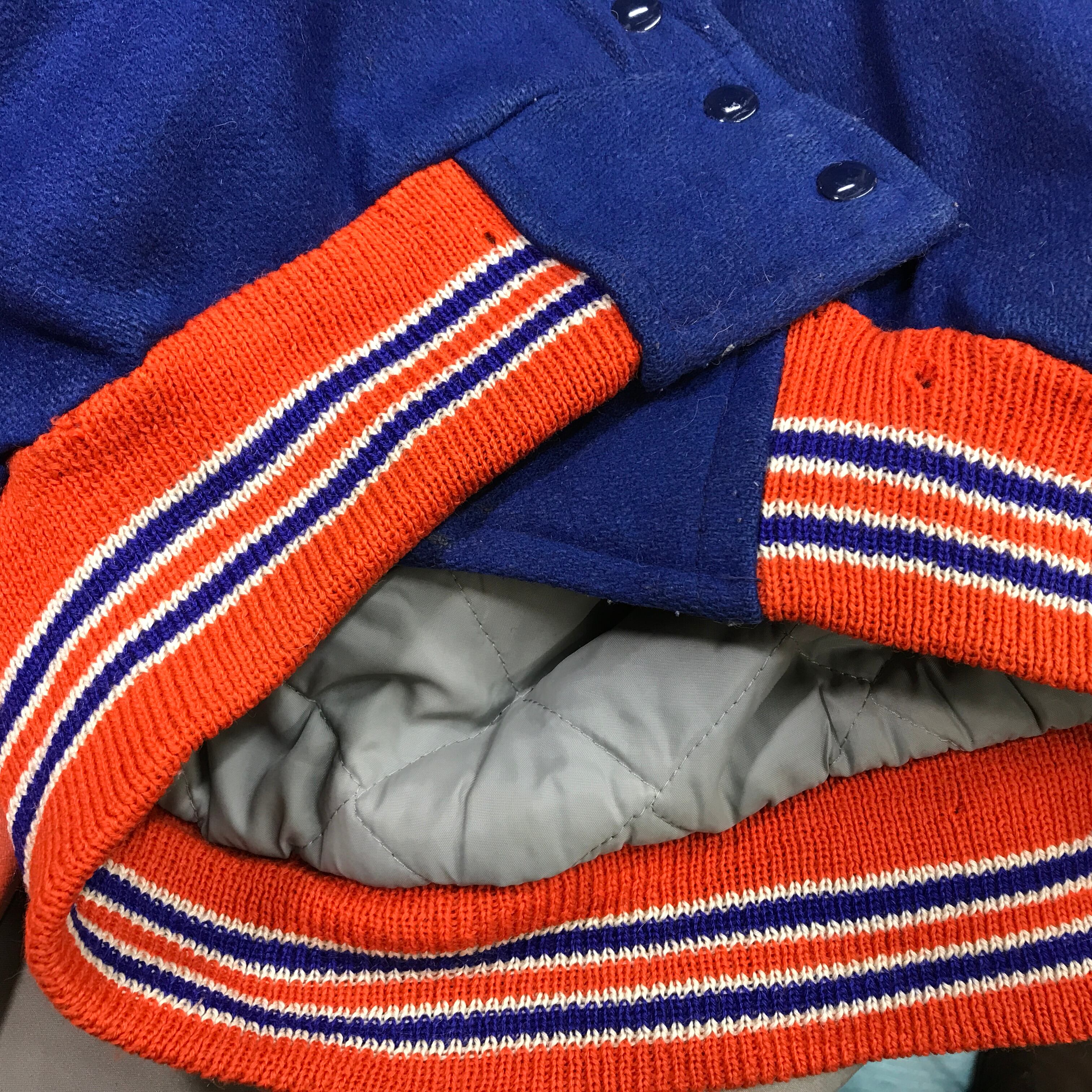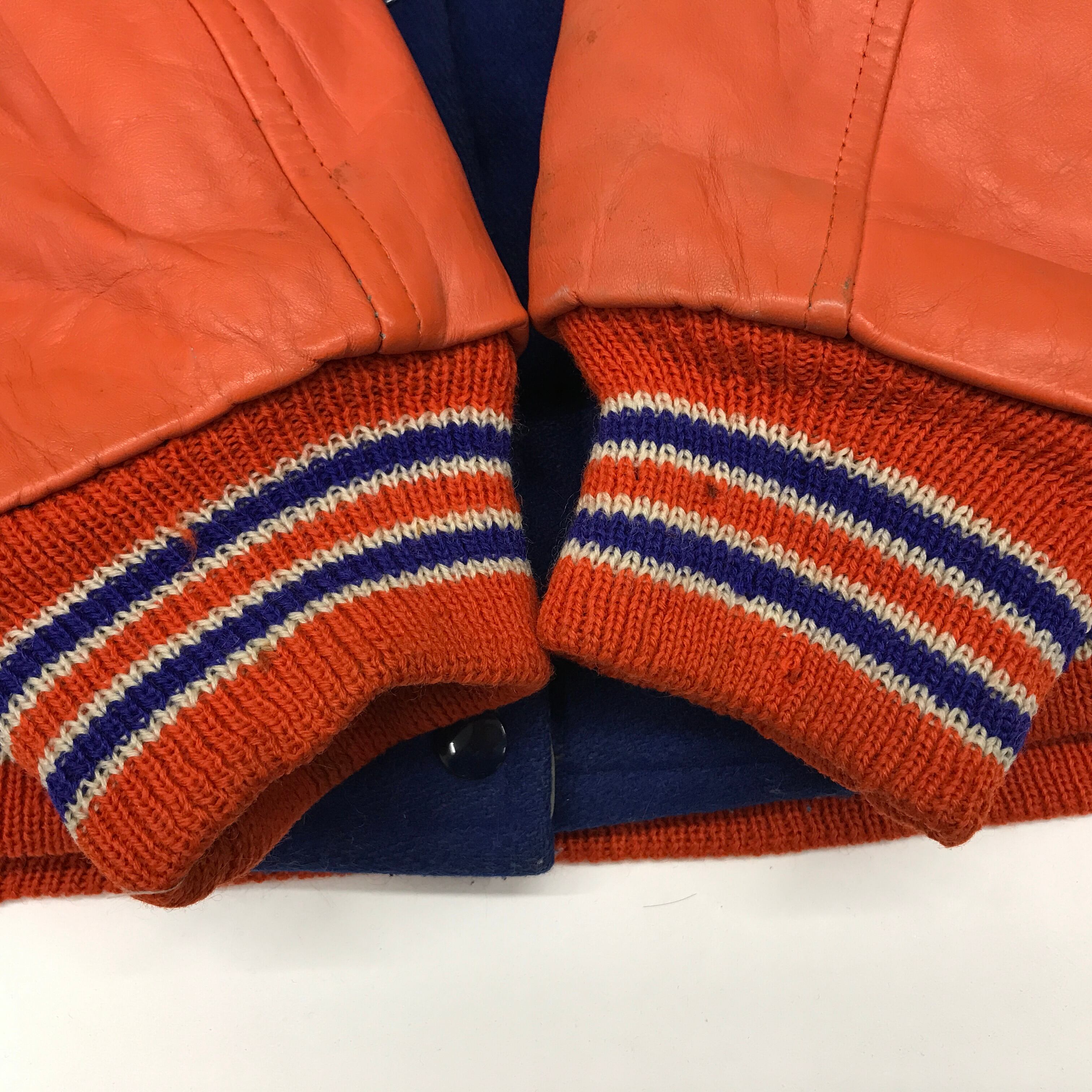 70〜80年代 ビンテージ HOFFMAN ESTATES HAWKS そで革 ウールスタジャン ベースボールジャケット