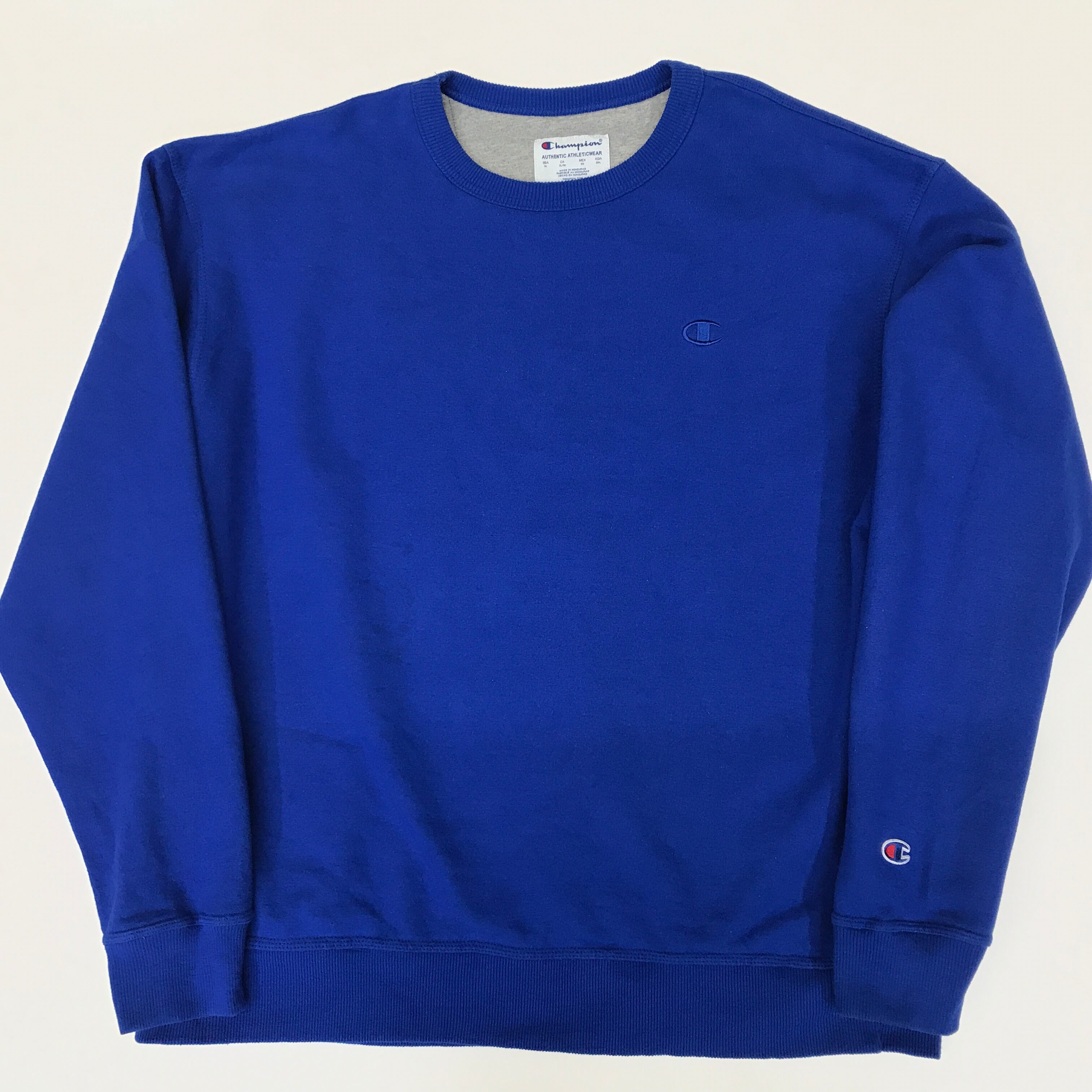 CHAMPION チャンピオン 無地 刺繍 C ワンポイントロゴ 袖目あり スウェットシャツ ロイヤルブルー XL
