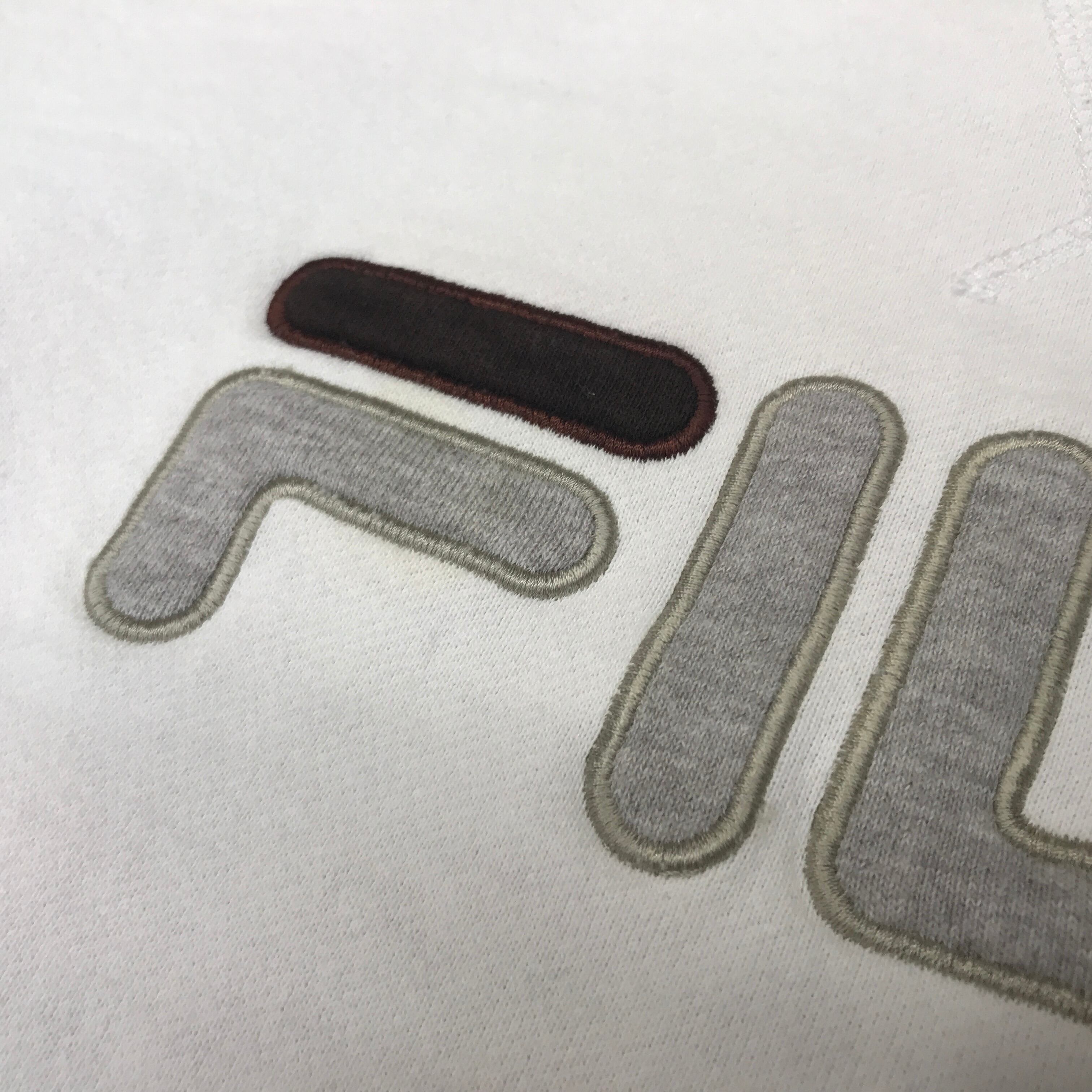[SALE] FILA フィラ 胸ロゴ刺繍 アップリケ付き スウェット 腕切り替え ライン入り ホワイト
