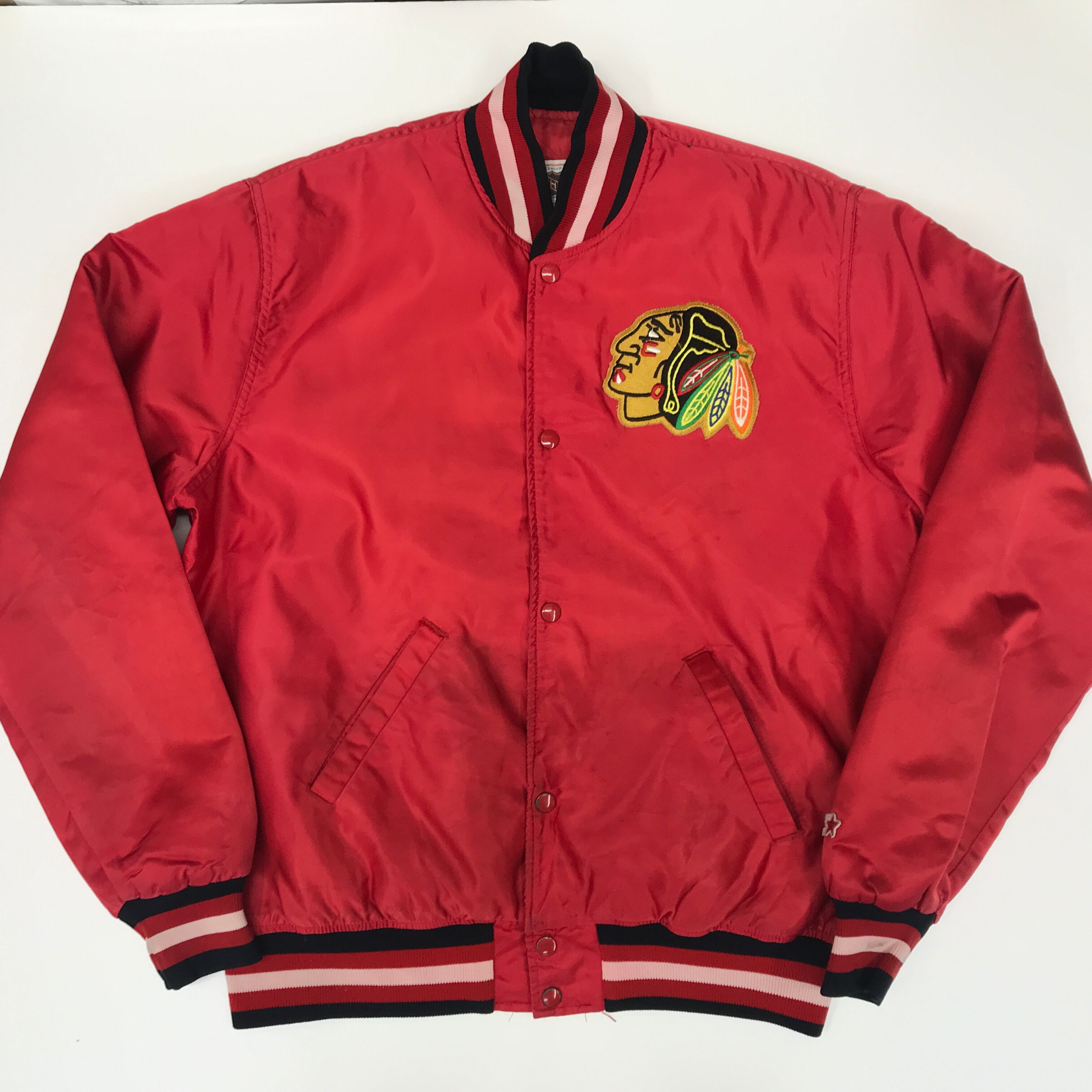 STARTER スターター 90年代 USA製 NHL CHICAGO BLACKHAWKS 刺繍ワッペン付き ナイロンスタジャン 中綿入り ベースボールジャケット XL