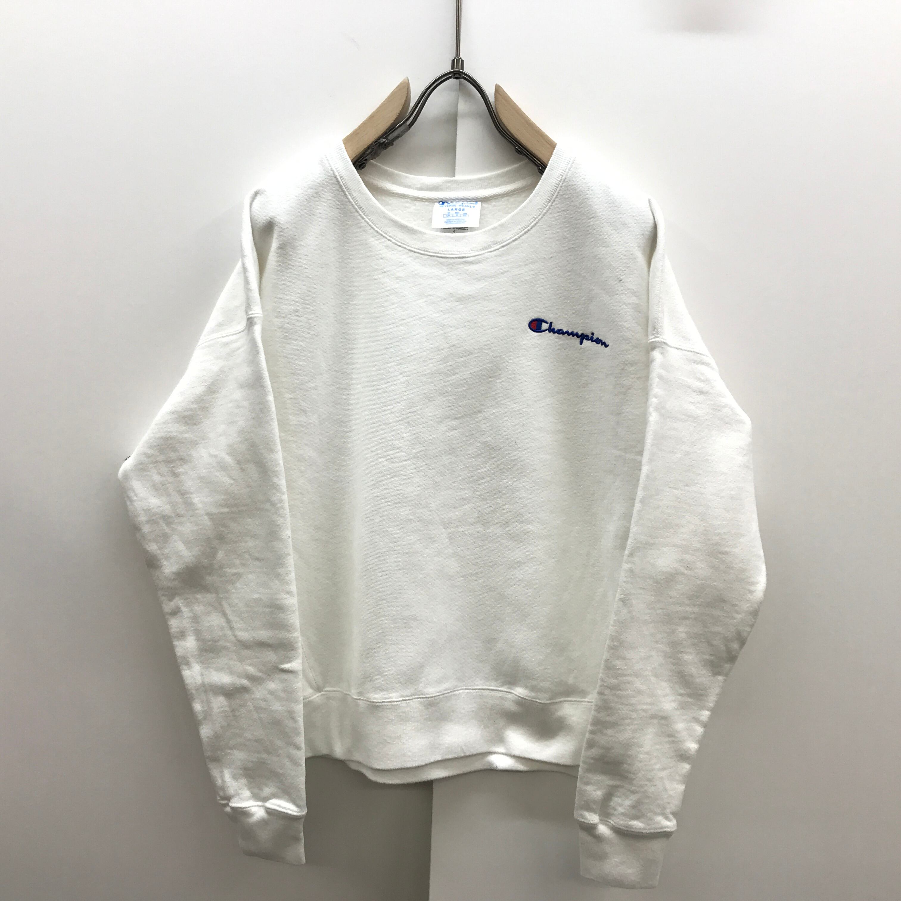 [SALE] CHAMPION チャンピオン レディース リバースウィーブ スクリプトロゴ ワンポイント 刺繍クルーネック スウェット 単色青タグ ホワイト
