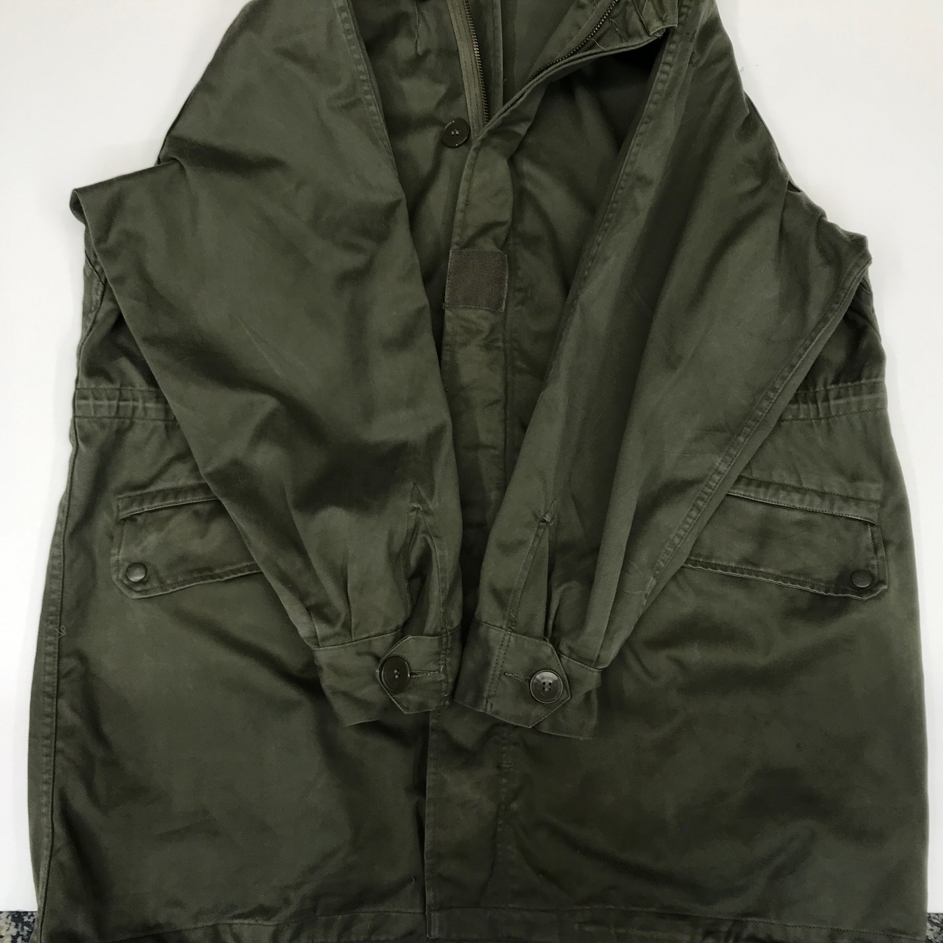 1980年に採用されたボアライナーが取り外し可能で大人気のフランス軍M-64パーカーコートです。良い意味で使いこまれたUSEDで雰囲気が抜群す。防寒性もあり流石フランスでスタイリッシュなデザインで素材が柔らかくとても着やすいコートです。スーツの上から着ても雰囲気が良くカッコいです。もちろんライナーを外せば薄手のコートになりますので春、秋も着ていただけ3シーズン大活躍致します。ボワライナーはへたりと背中に穴があいてます。おまけ程度に考えてください。全体的に色あせ、薄汚れなどあります。引っかけキズも少々。写真で確認してください。