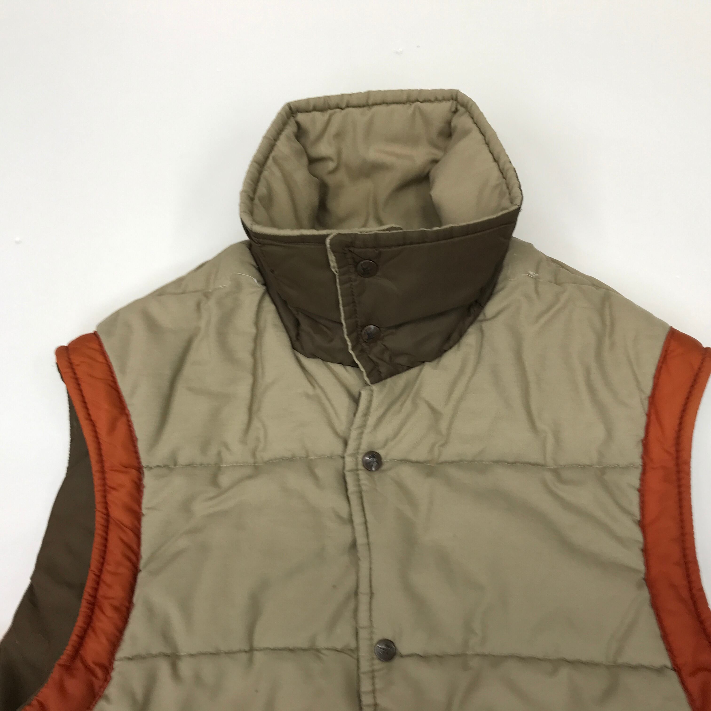 古着 ナイロン ダウン ベスト メンズ 70s 70'S ツートンカラー BEIGE オレンジ