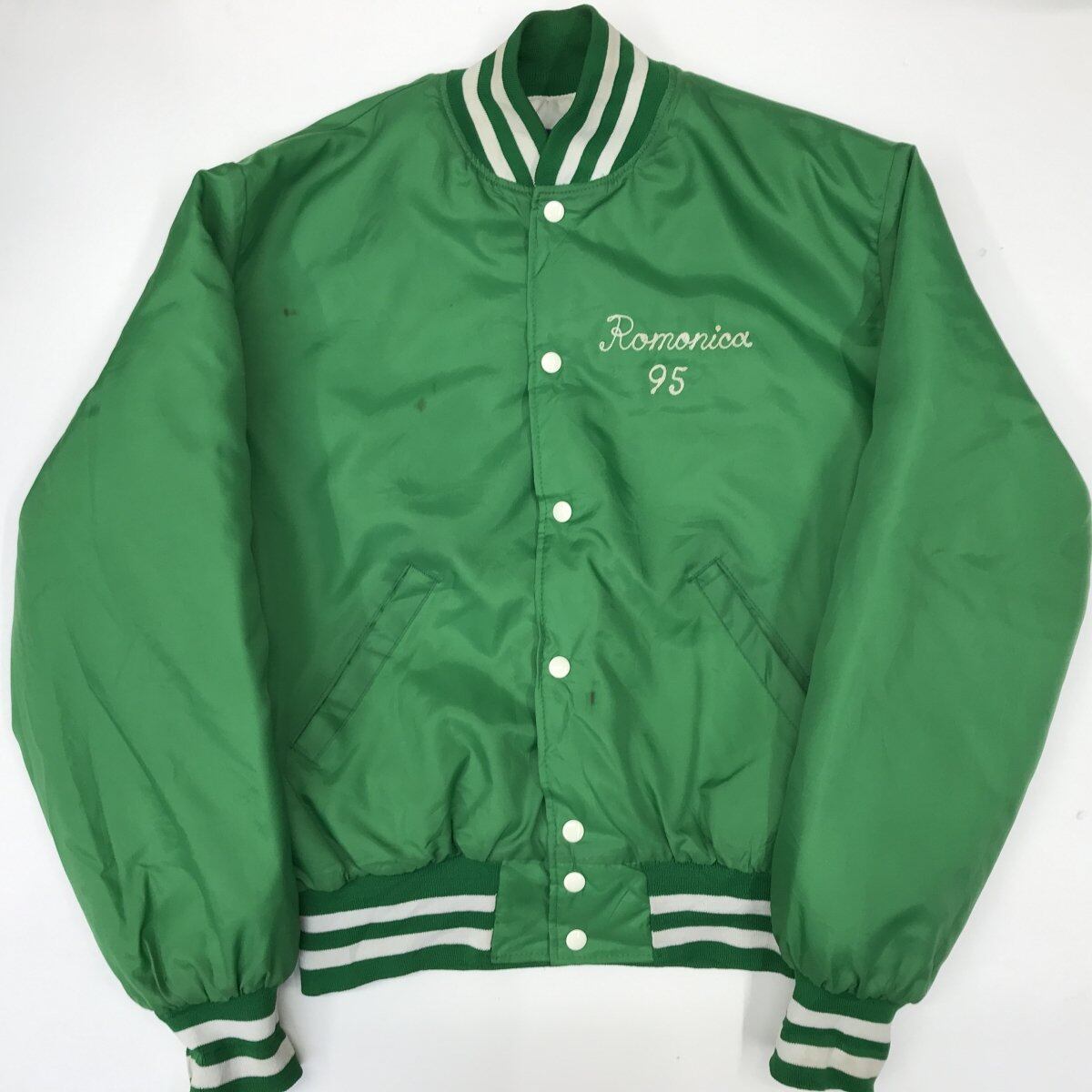 [SALE] HOLLOWAY ホロウェイ 70〜80年代 USA製 ビンテージ チェーンステッチ刺繍入り ナイロンスタジャン ベースボールジャケット グリーン