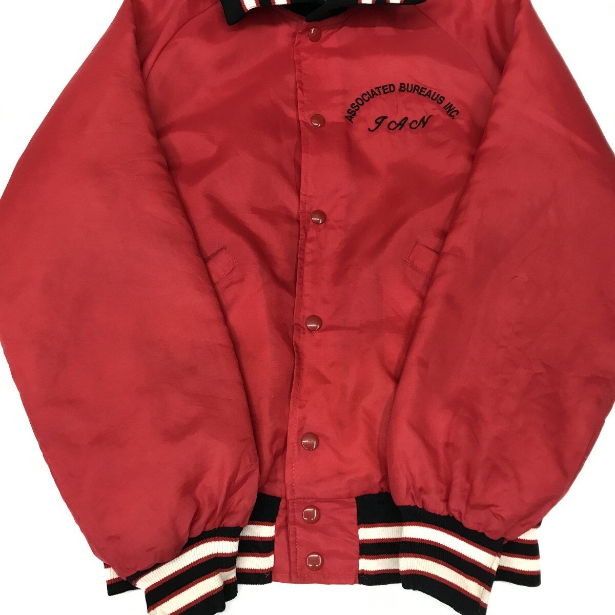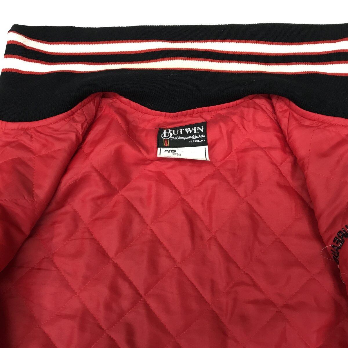 BUTWIN バトウィン 80年代 USA製 企業刺繍入り 襟付き 裏キルティング ナイロンベースボールジャケット レッド
