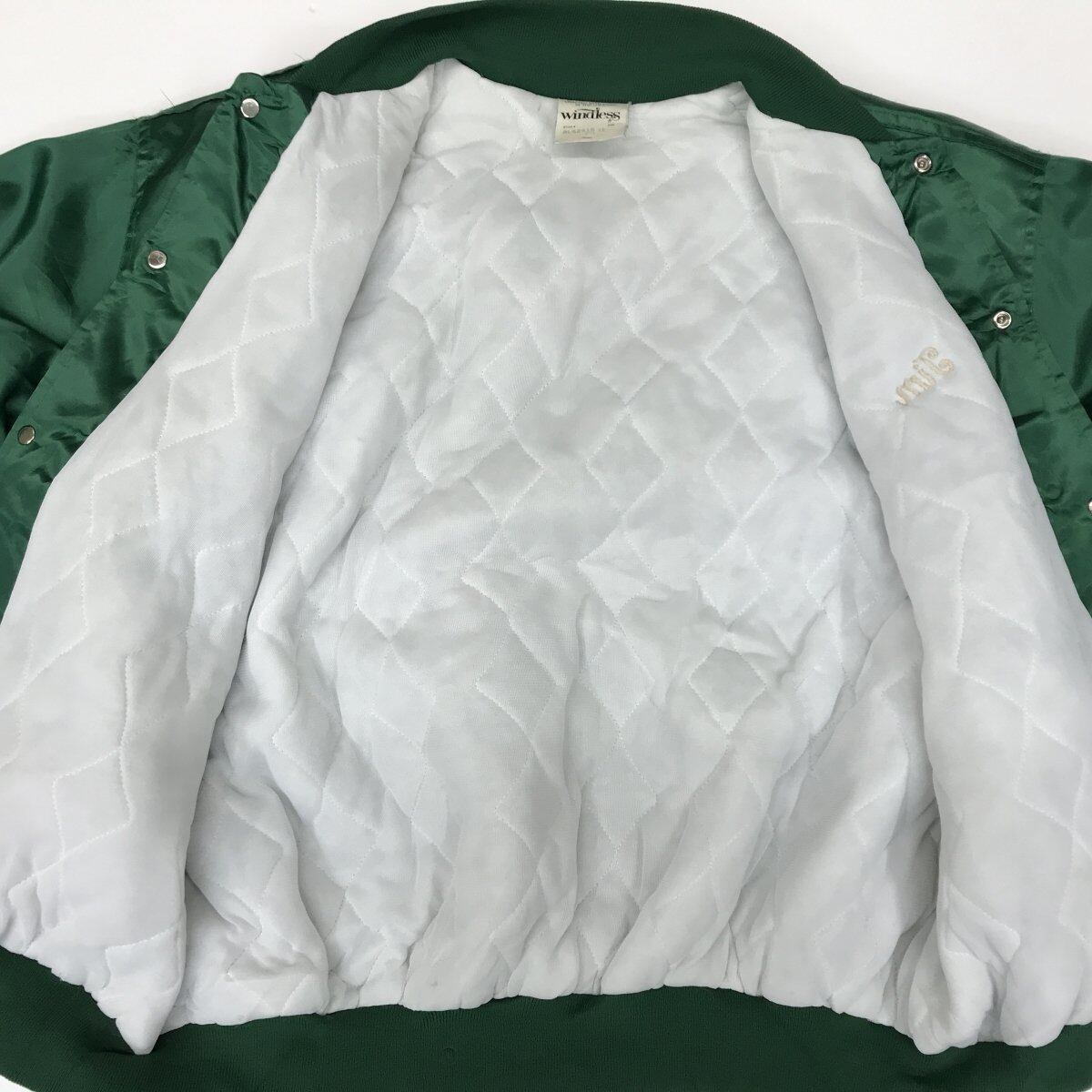 WINDLESS 80〜90年代 USA製 オールド ナイロン光沢サテンベースボールジャケット グリーン