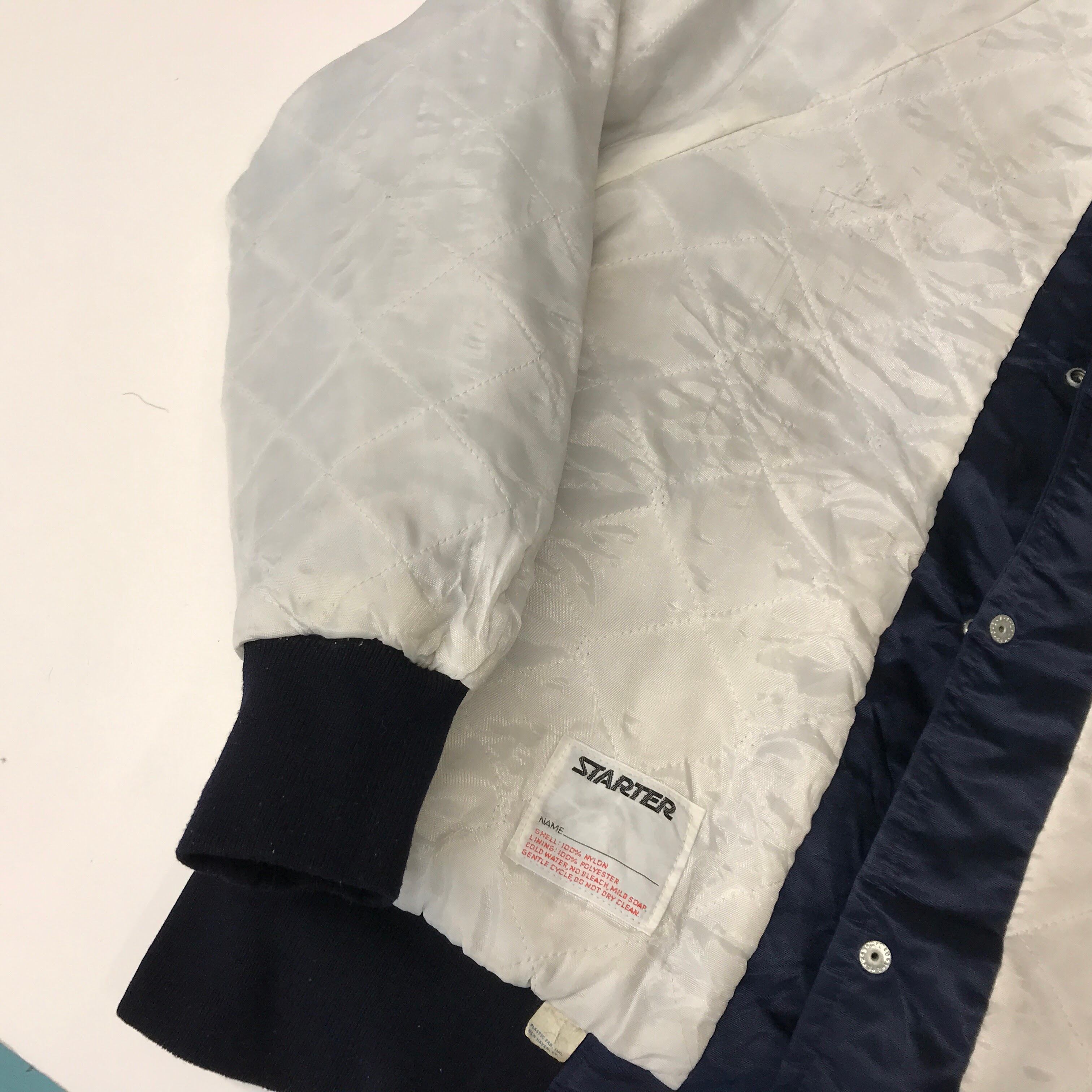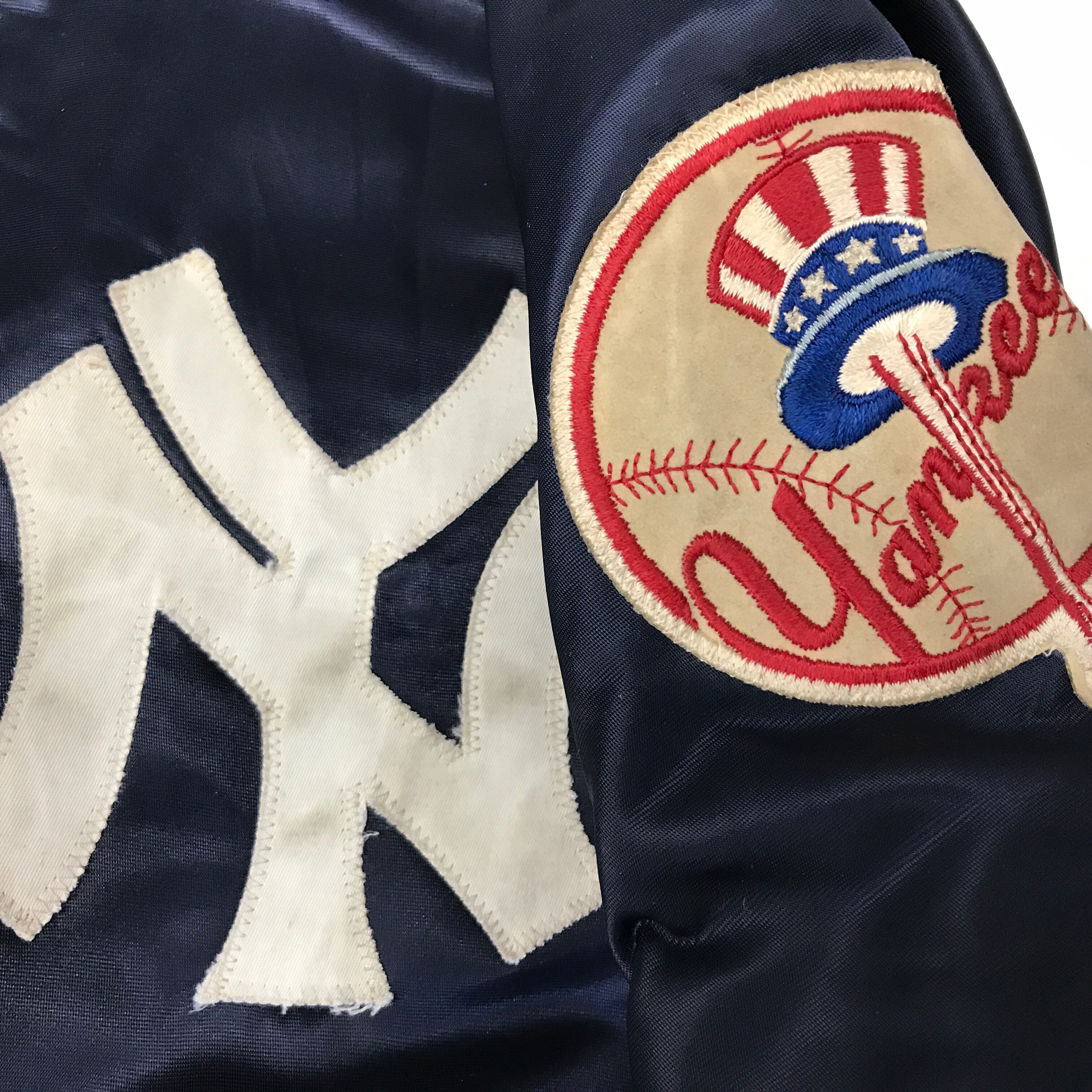 STARTER スターター 80〜90年代 MLB ニューヨークヤンキース 胸肩ロゴアップリケ付き 光沢 中綿ナイロンスタジャン ベースボールジャケット ネイビー
