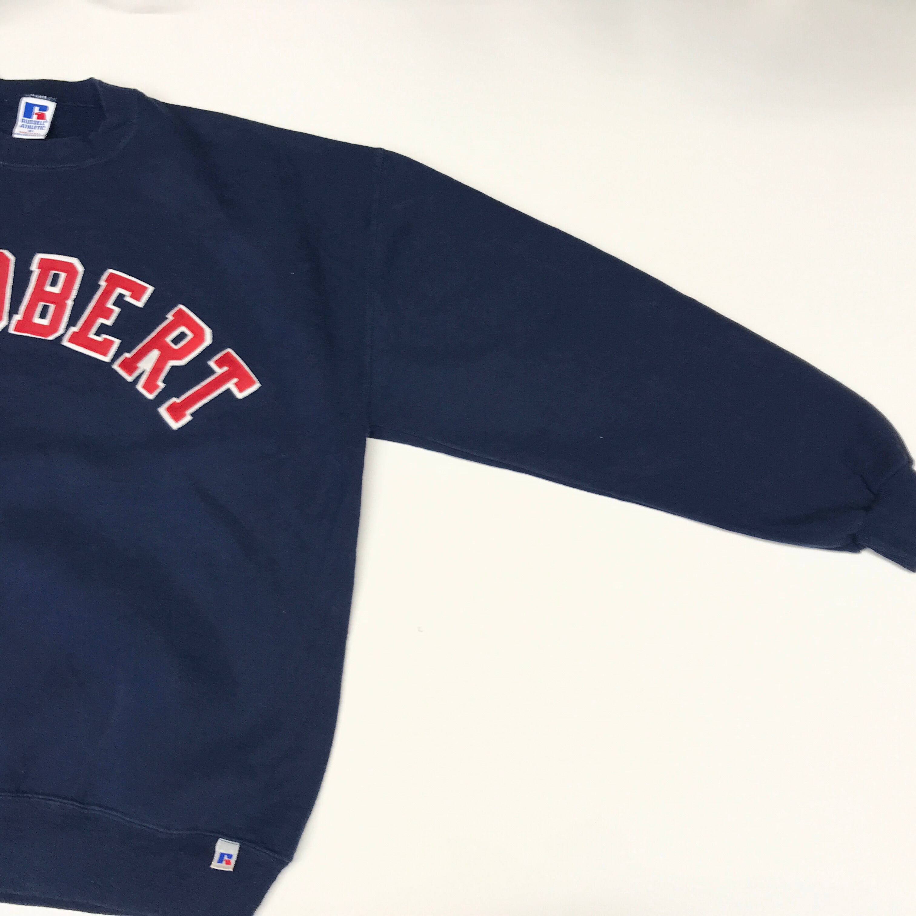 RUSSELATHLETIC ラッセルアスレチック 90年代 USA製 胸ビッグロゴ アップリケ付き V付き スウェット ネイビー