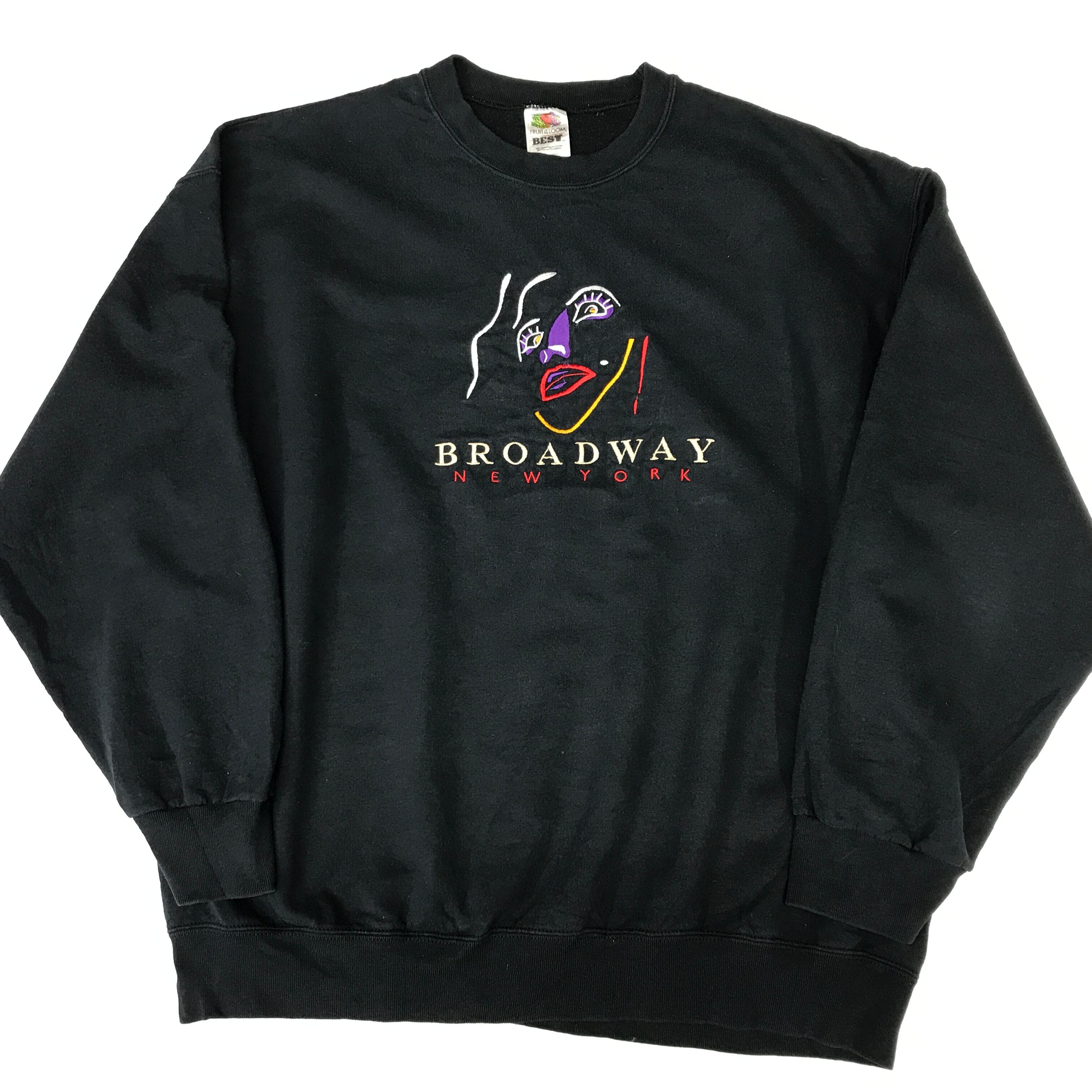 FRUIT OF THE LOOM フルーツオブザルーム 90年代 BROADWAY NEW YORK 胸ビッグフェイス刺繍 スウェット ブラック