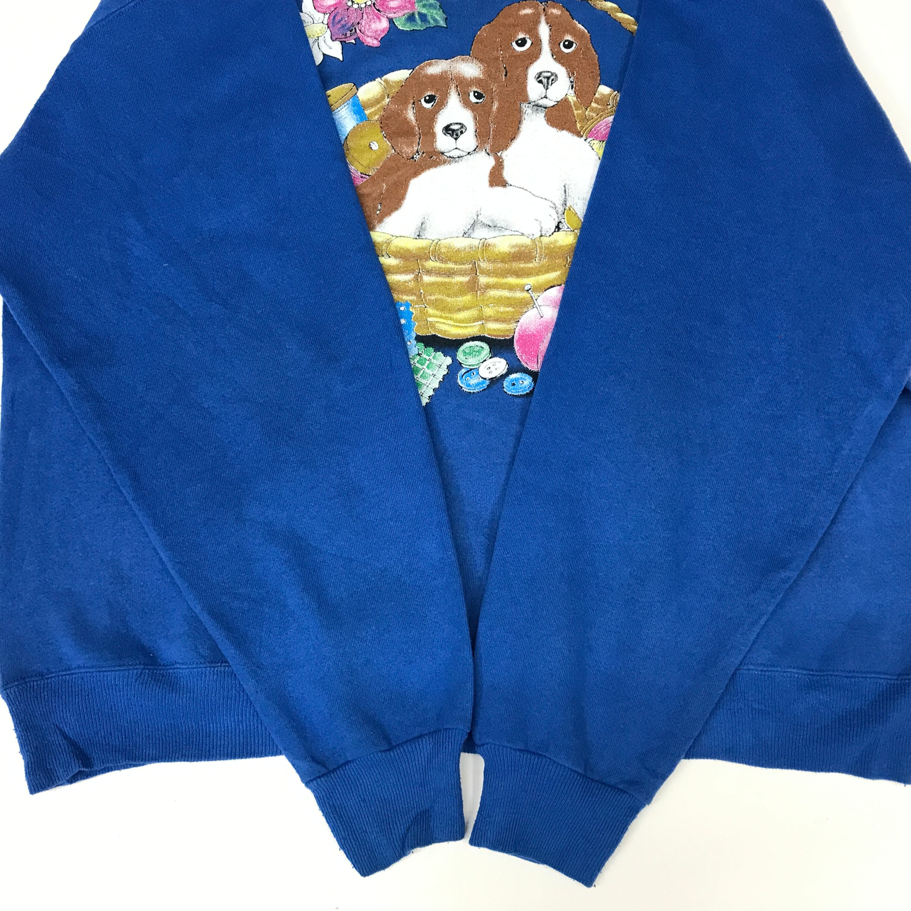 [SALE] HANES ヘインズ 90年代 アニマルプリント ワンちゃん2匹 犬プリントスウェット ロイヤルブルー