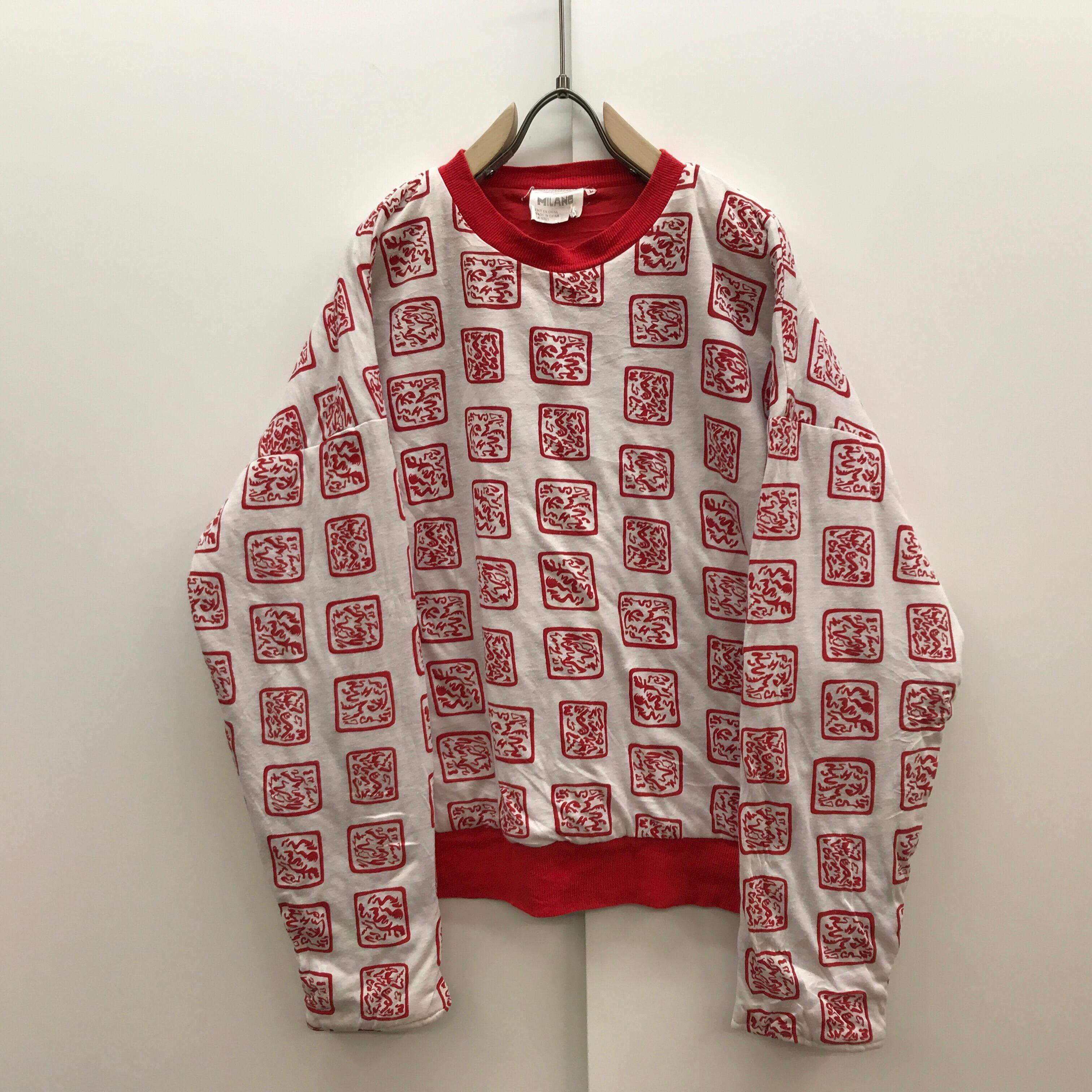 MILANO 70年代 ビンテージ リバーシブル? 中綿入り 総柄コットンスウェット レッド