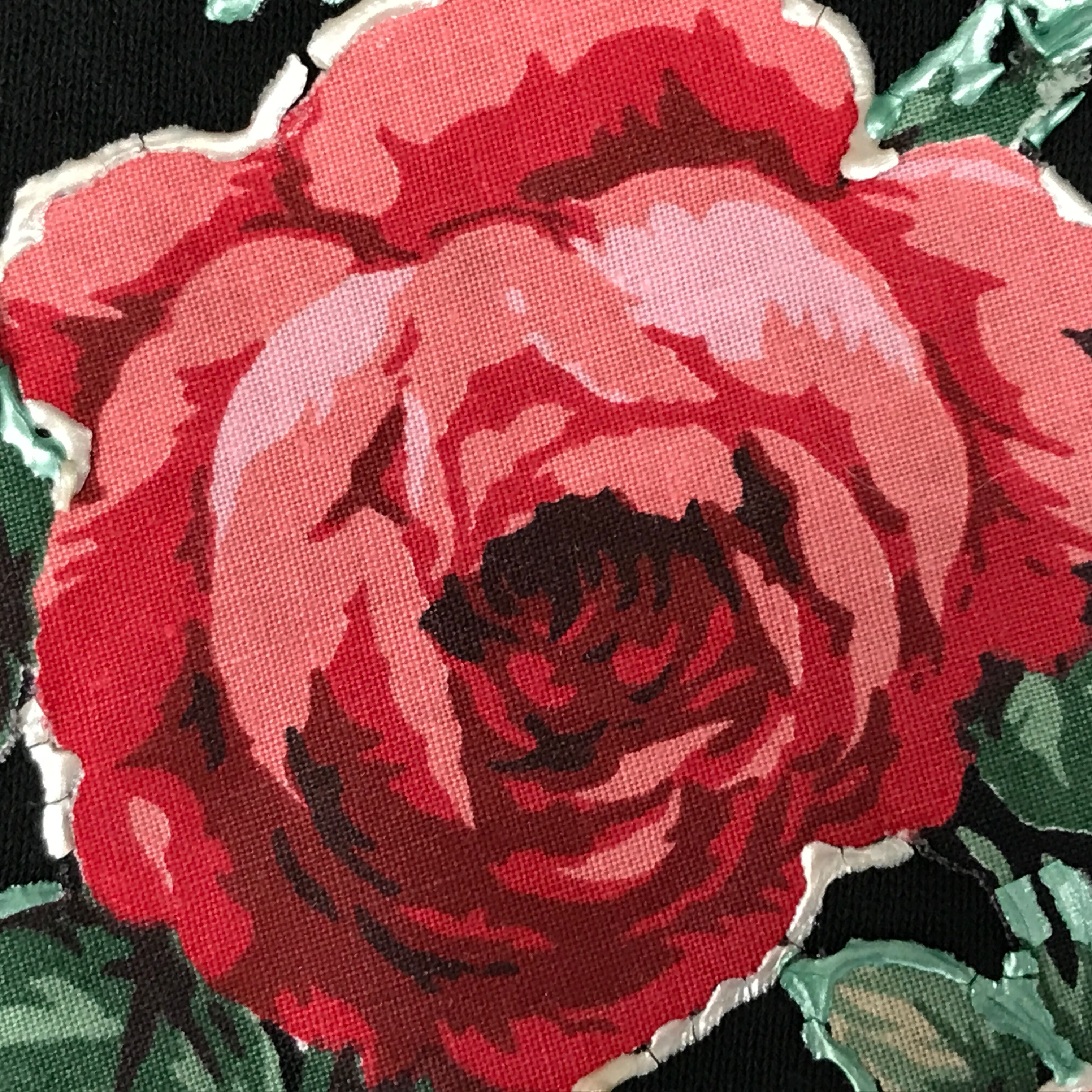 FRUITS OF THE ROOM フルーツオブザルーム 80年代 手描きペイント アップリケ レトロローズ 薔薇柄 スウェット トレーナー ブラック