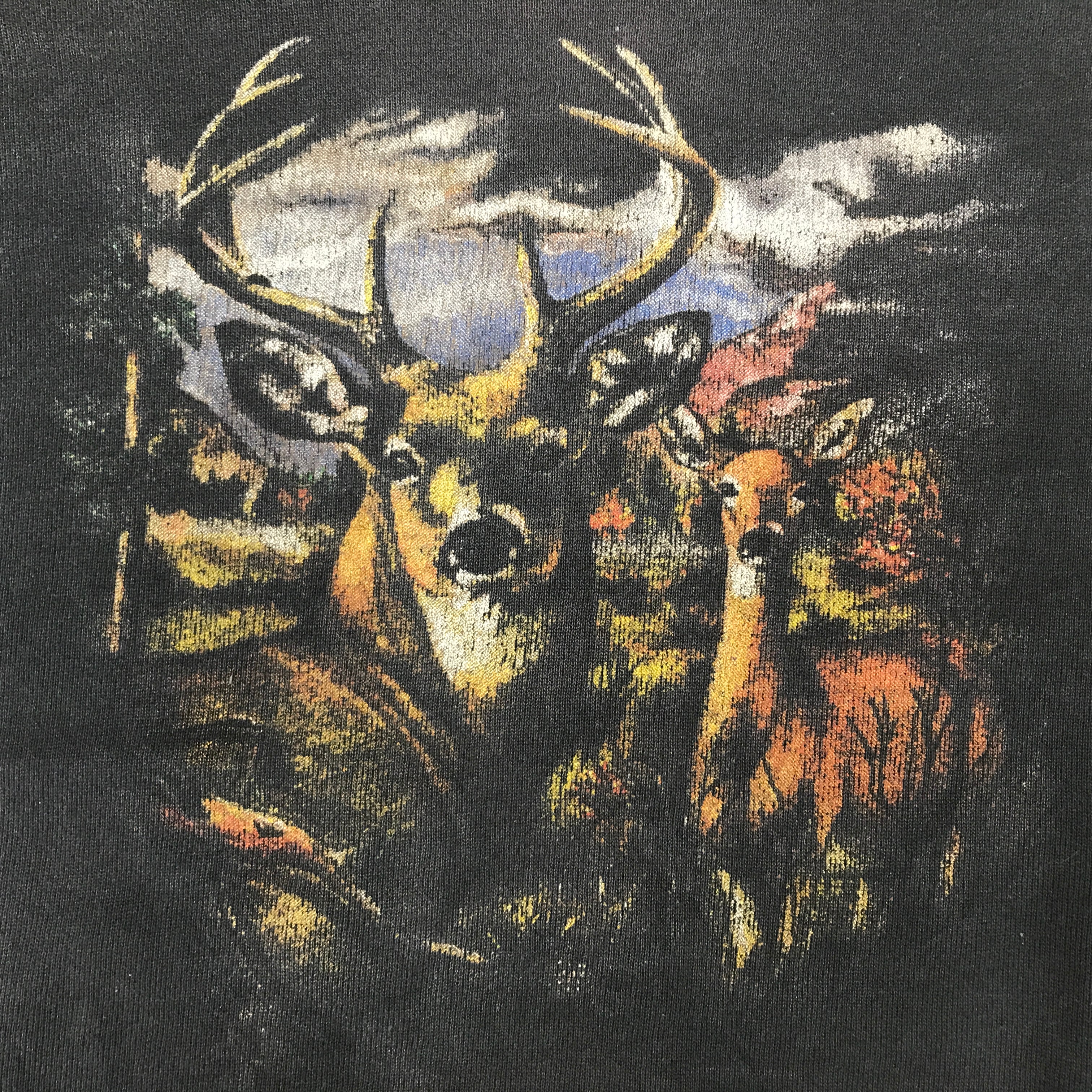 DELTA デルタ 90年代 動物柄 鹿柄 アニマルプリントスウェット 油絵風 スウェット ブラック