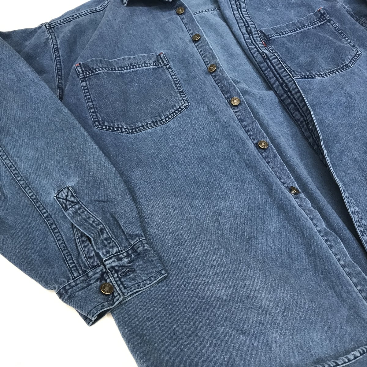 [SALE] LEVI'S リーバイス 90年代 長袖 後染め コットンワークシャツ 無地 メンズL ブルー ヴィンテージ