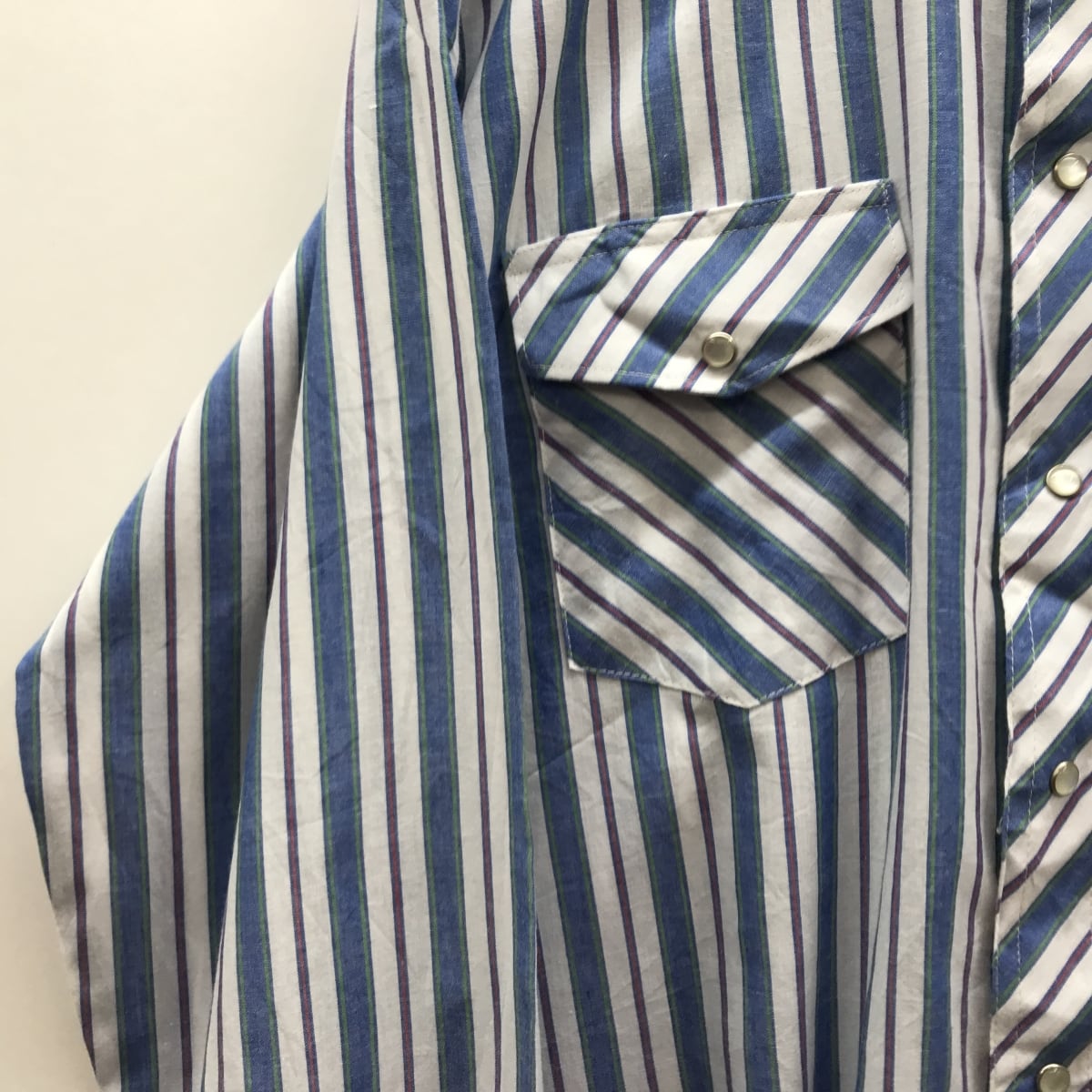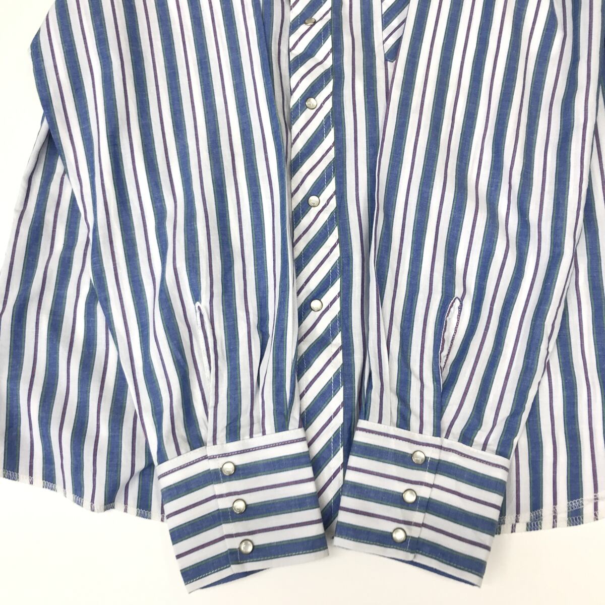 [SALE] WRANGLER ラングラー 80〜90年代 長袖 青タグ ストライプウエスタンシャツ L