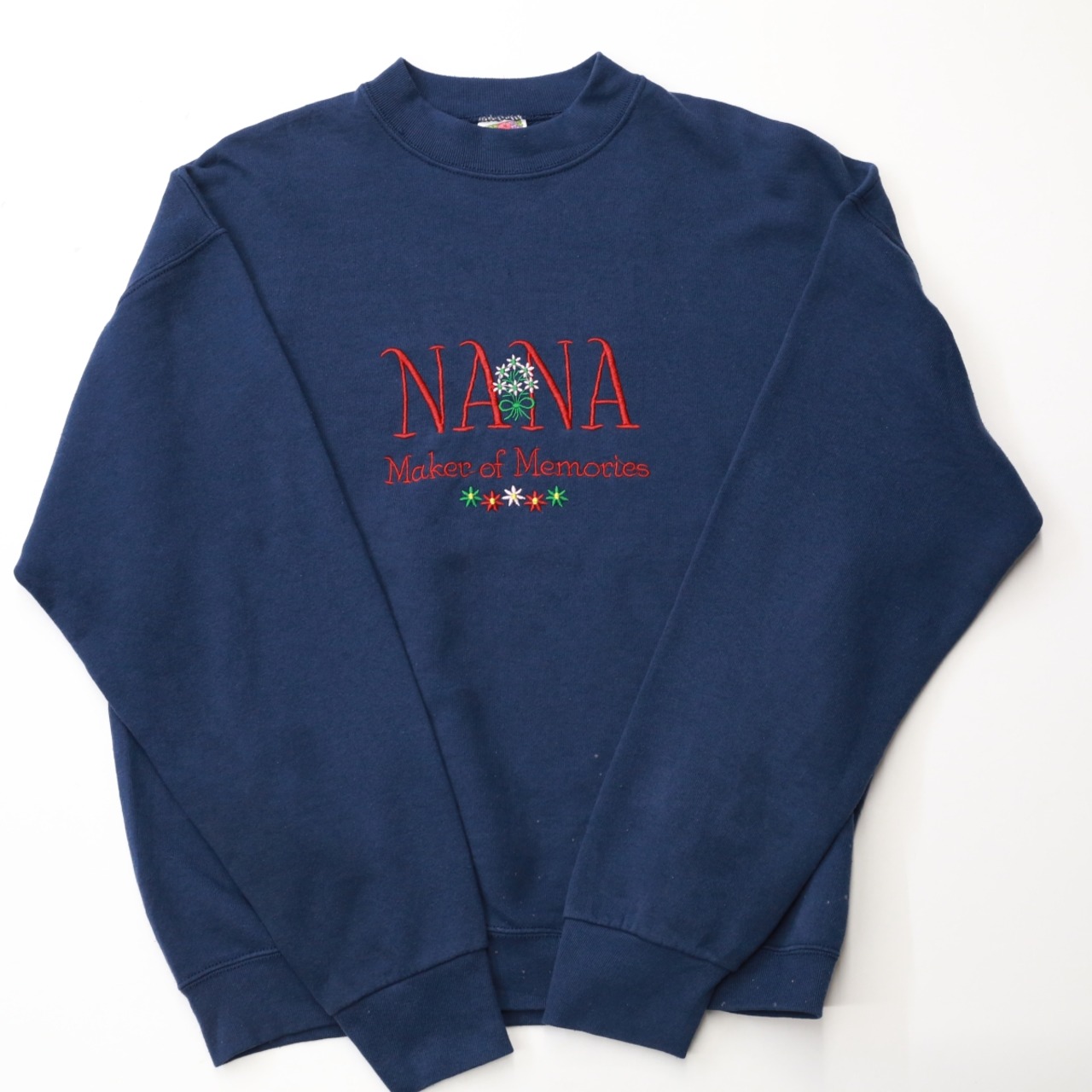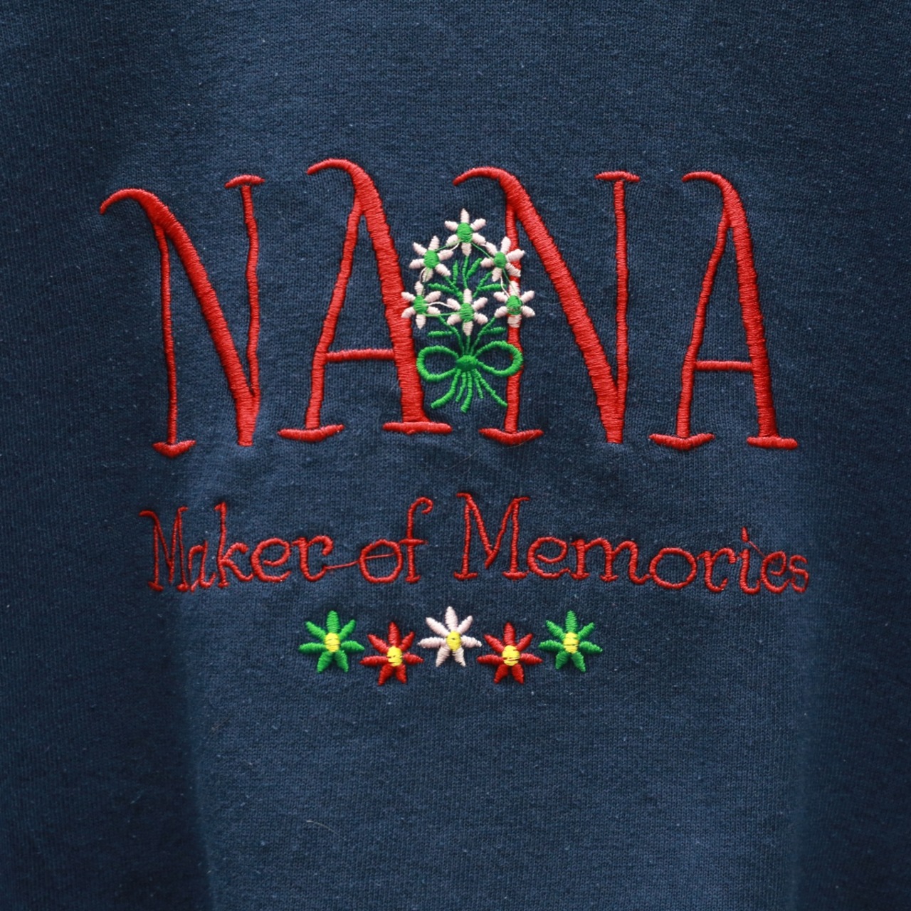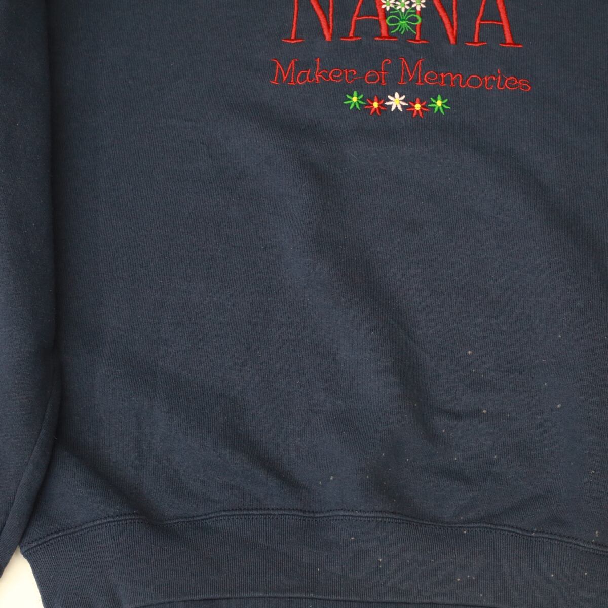 FRUIT OF THE LOOM フルーツオブザルーム 90年代 クルーネック スウェット 刺繍 フラワー ボタニカル ネイビー L