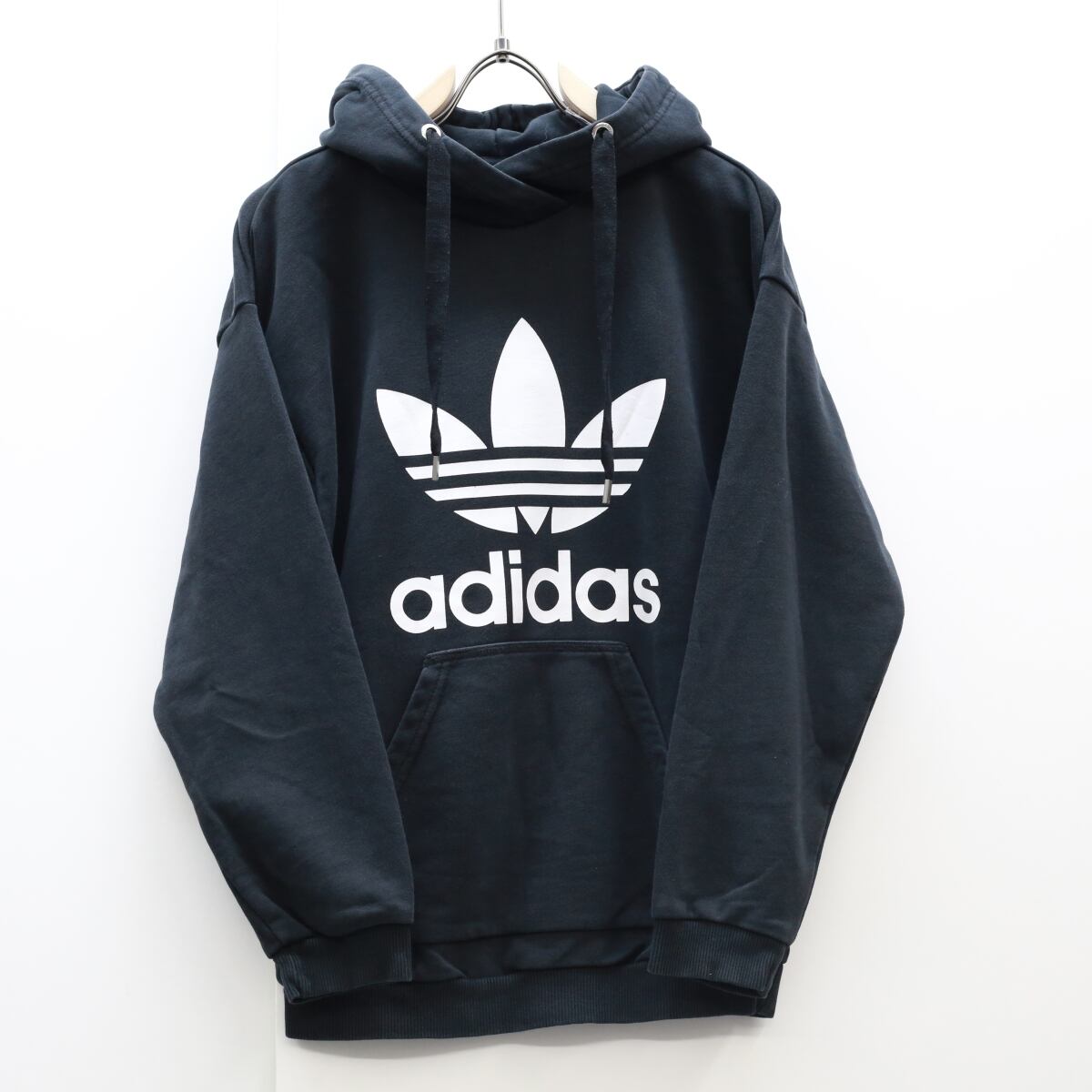 ADIDAS アディダス フーディー パーカー スウェット トレフォイル 三つ葉 ブラック M