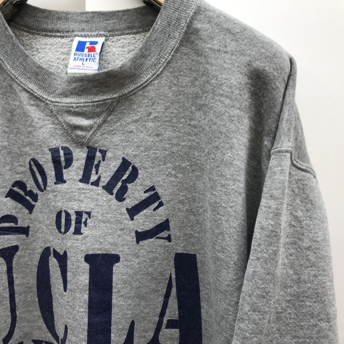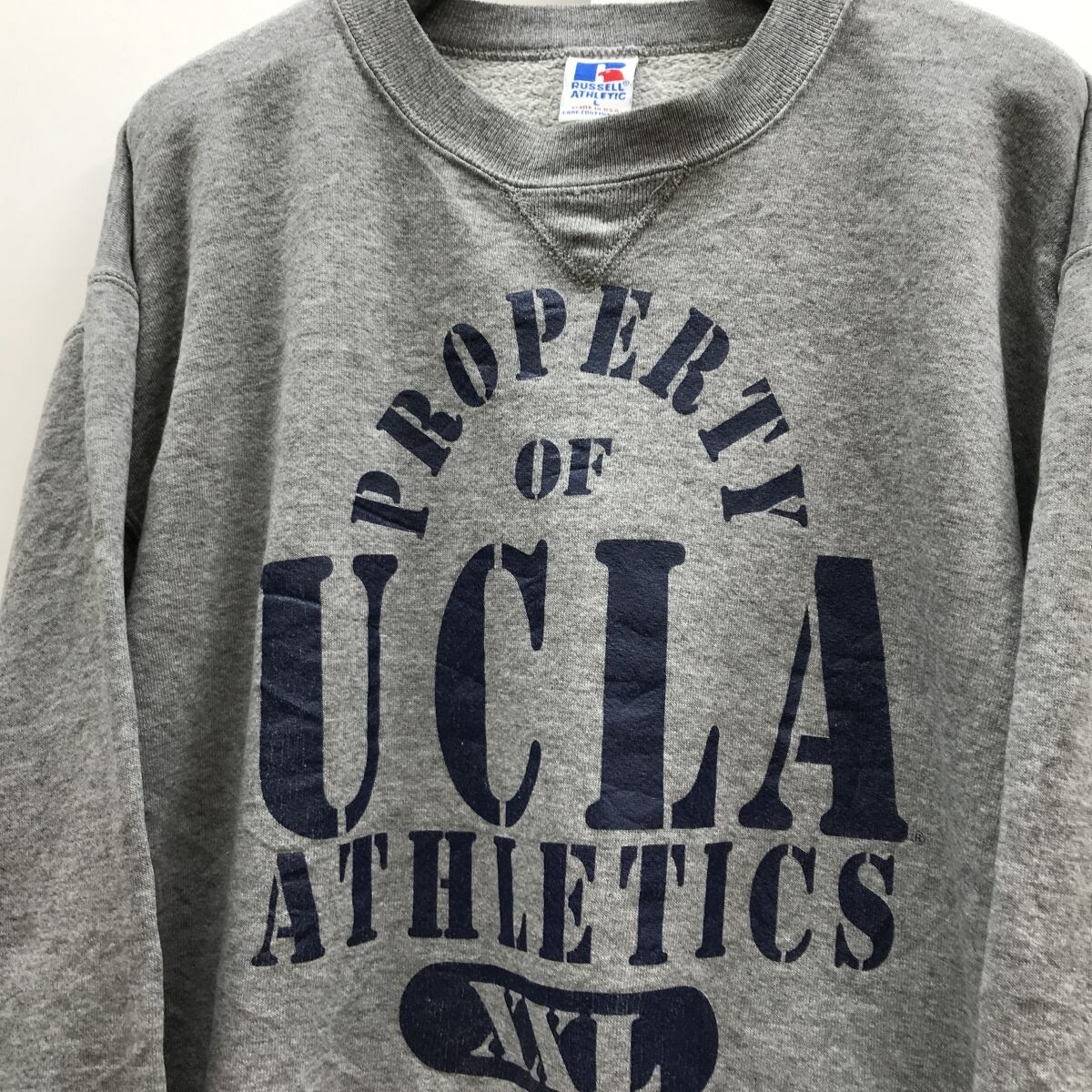 RUSSEL ATHLETIC ラッセルアスレチック 90年代 USA製 前V UCLA カレッジプリント スウェット トレーナー メンズL 古着 グレー