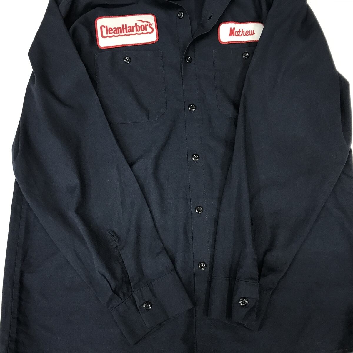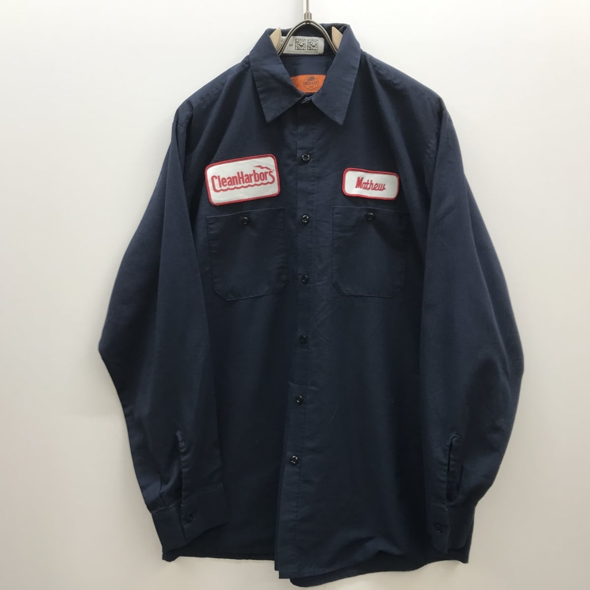 RED KAP レッドキャップ 80〜90年代 ビンテージ ワークシャツ 企業ワッペン パッチ付き ネイビー メンズL
