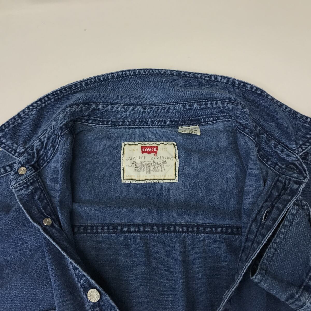 LEVI'S リーバイス 90年代 長袖 後染め風 コットンワークシャツ 無地 メンズL うすネイビー ヴィンテージ