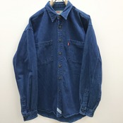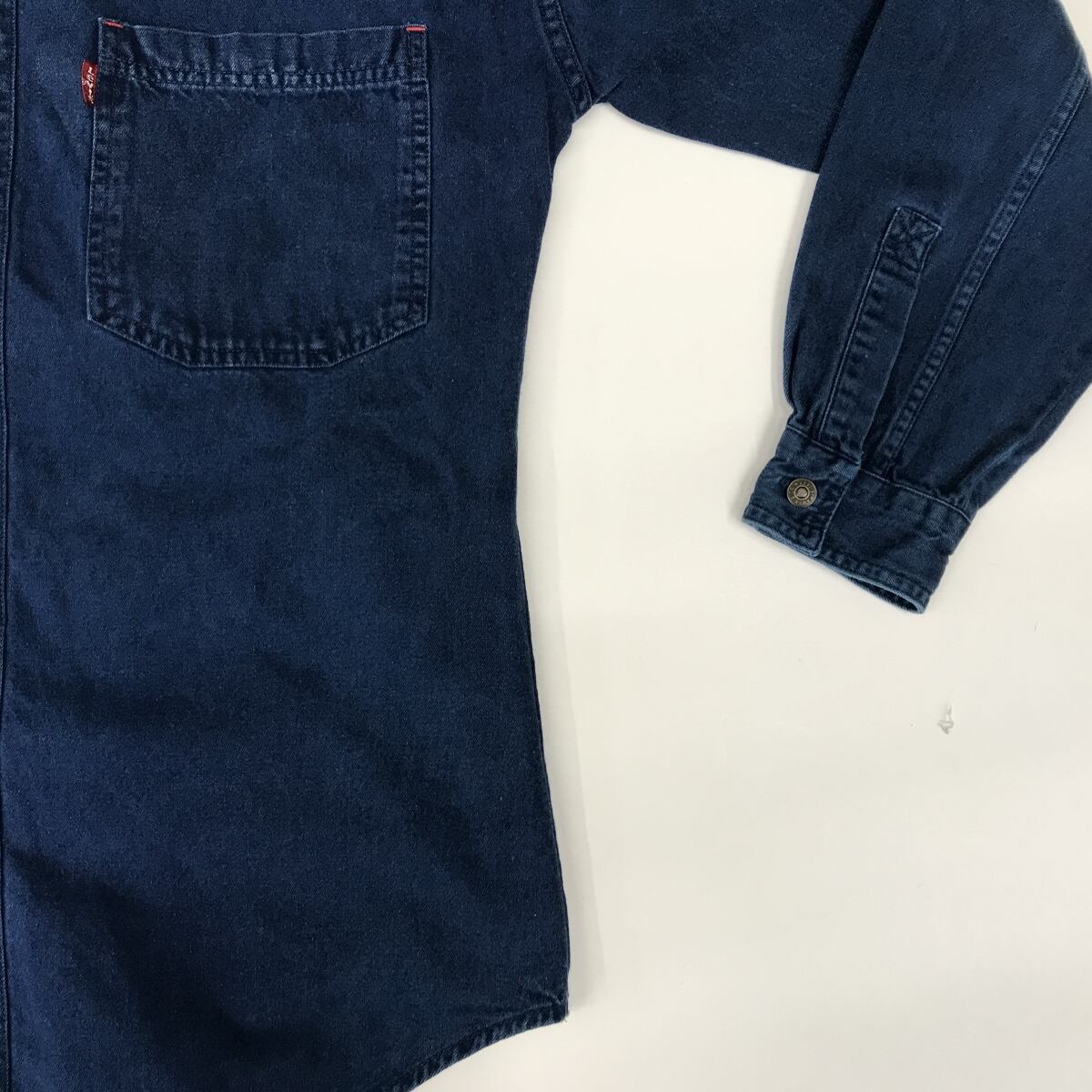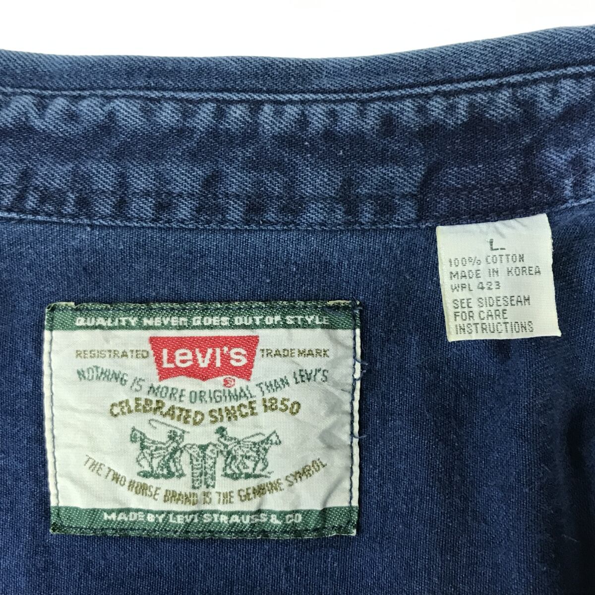 LEVI'S リーバイス 90年代 長袖 後染め タイト目コットンワークシャツ 無地 メンズL ヴィンテージ 色落ちネイビー