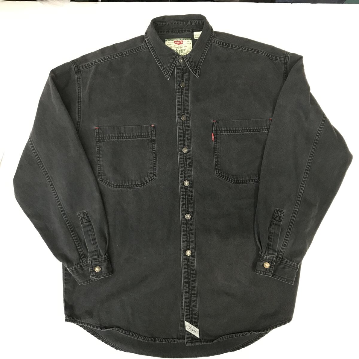 LEVI'S リーバイス 90年代 長袖 後染め コットンワークシャツ 無地 メンズL 色落ちブラック ヴィンテージ