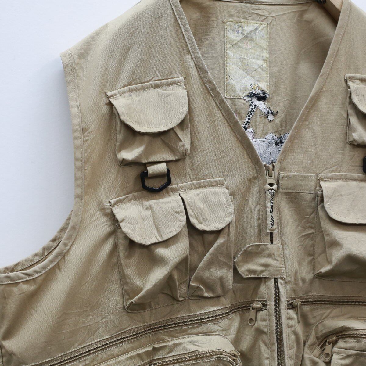 MASTER SPORTSMAN サファリベスト アニマル刺繍 動物 ベージュ XL