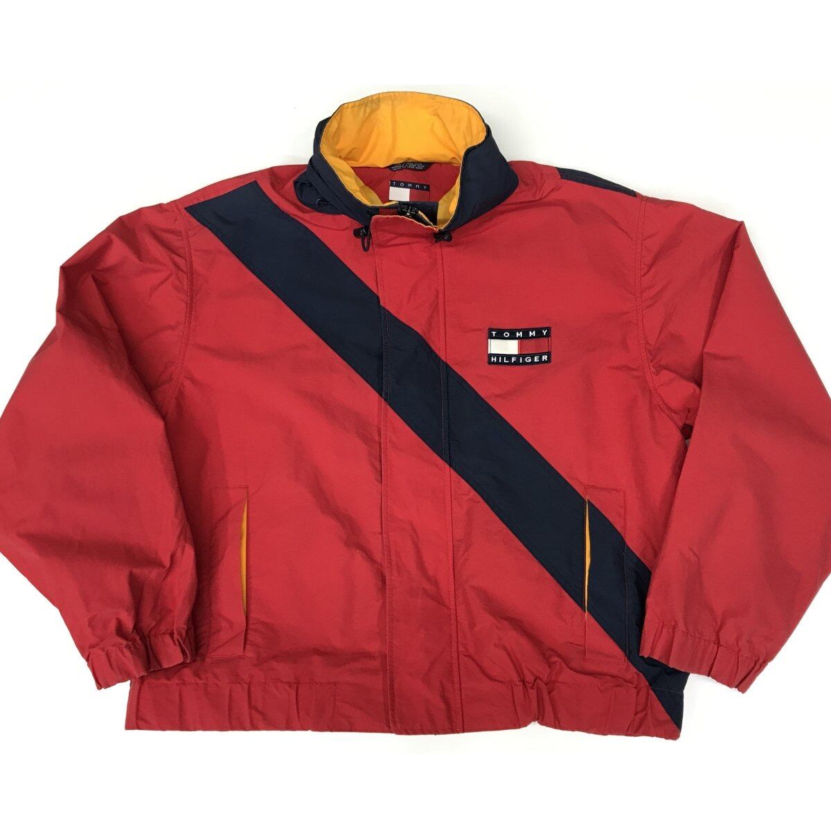 TOMMY HILFIGER トミーヒルフィガー 90年代 バック刺繍 デカロゴ ナイロンパーカー メンズXXL以上 ビッグサイズ ナイロンセイリングジャケット