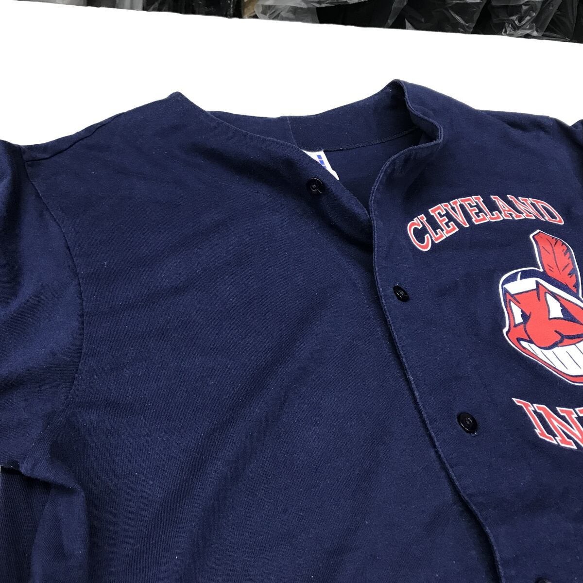 OFF THE BENCH 80年代 USA製 MLB CLEEVELAND INDIANS ベースボールシャツ 前開きTシャツカットソー メンズL