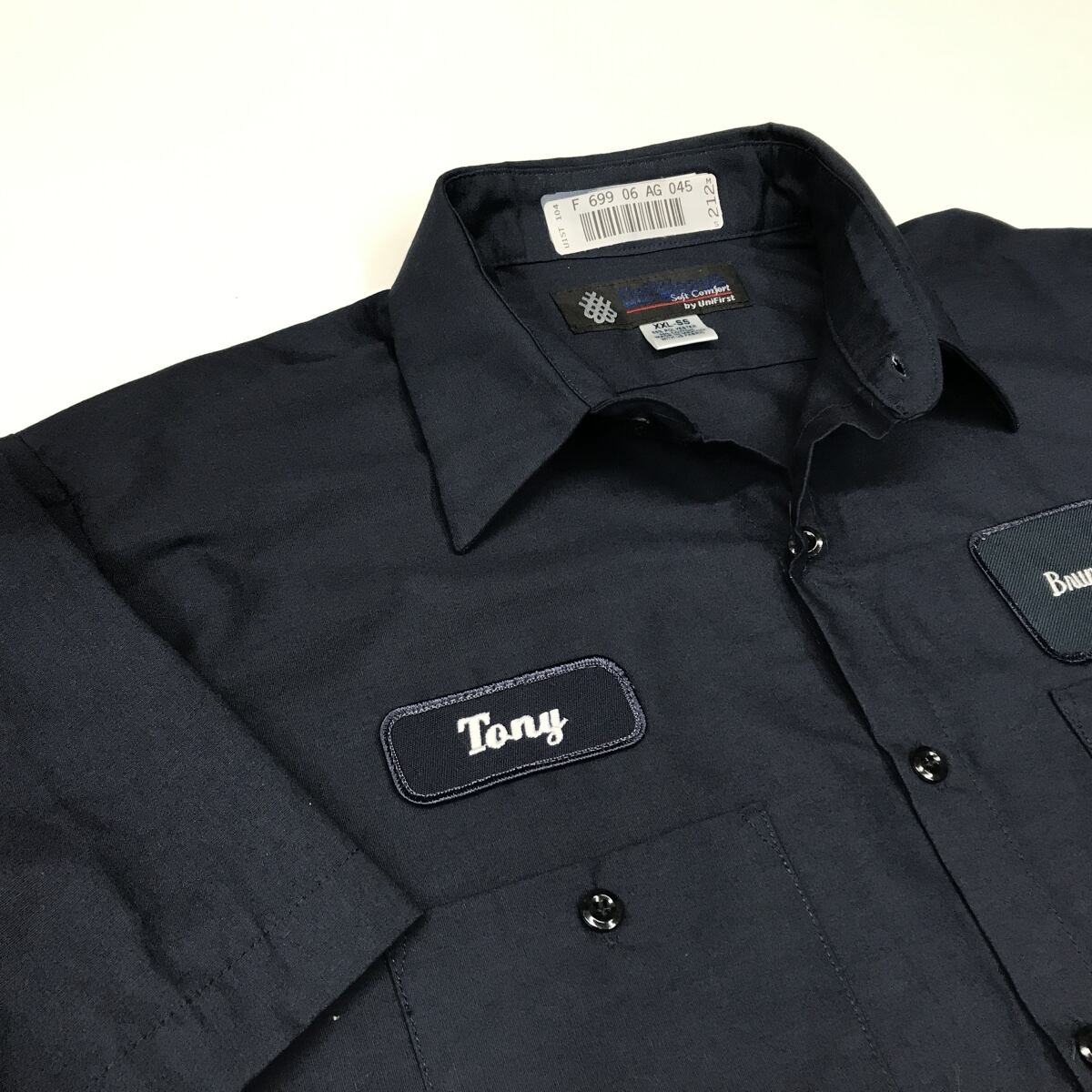 UNIFIRST UNIWEAVE 半袖ワークシャツ スクールワッペン付き ビッグサイズ! ネイビー メンズXXL以上