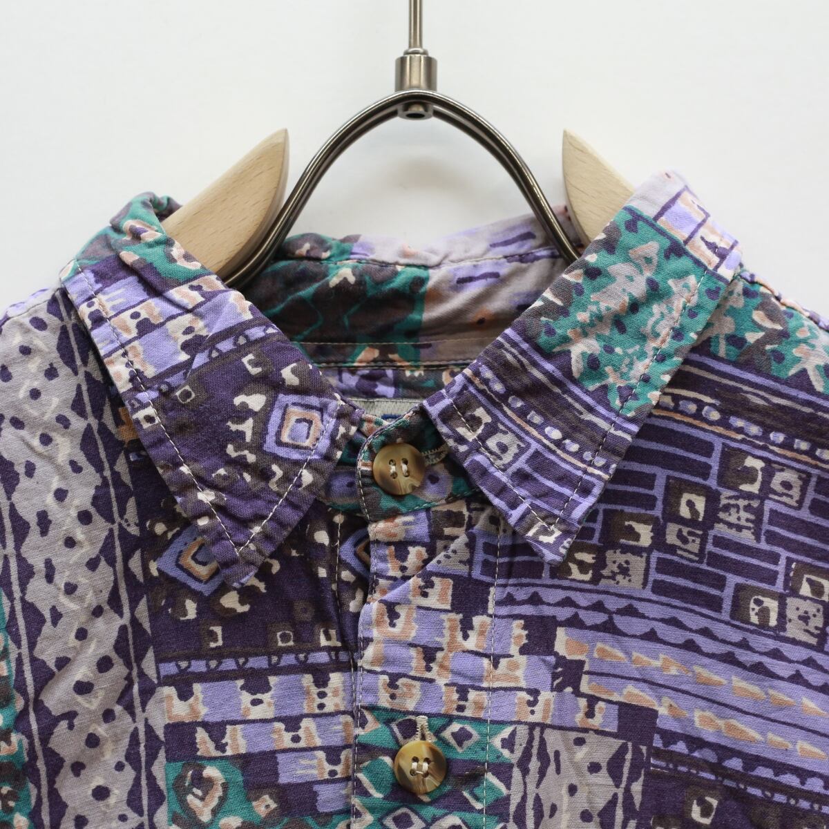 EX OFFICIO エクスオフィシオ 半袖 シャツ 抽象柄 パープル レトロ L