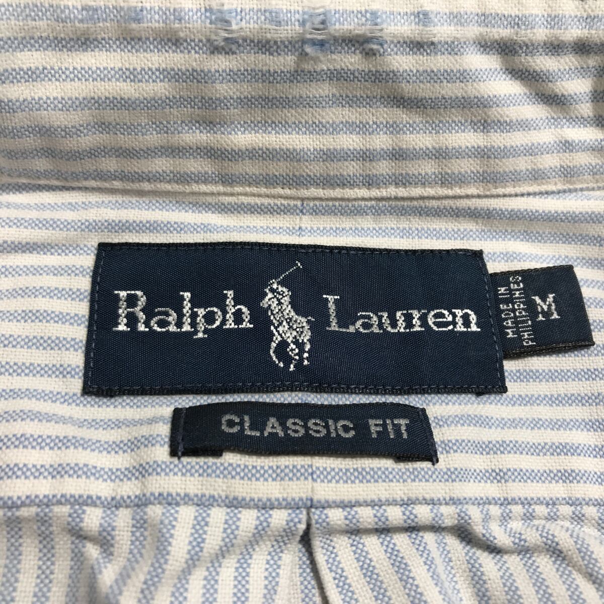 POLO by Ralph Lauren 90年代 ラルフローレン Ralph Lauren SHIRTS 長袖 OXFORD CLASSIC FIT コットン ボタンダウン ワンポイント ロゴ 刺繍 旧タグ US-Mサイズ うす水色ストライプ