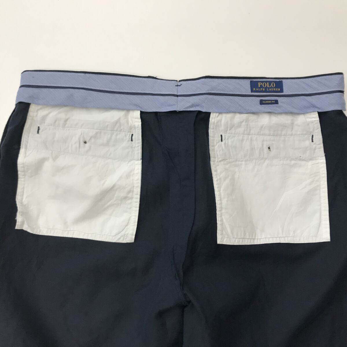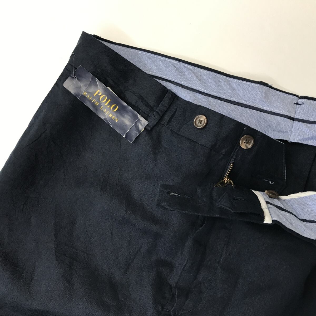 POLO by Ralph Lauren ラルフローレン 00年代 デッドストック CLASSIC FIT ノータック リネンパンツ メンズ W38 L32 ネイビー